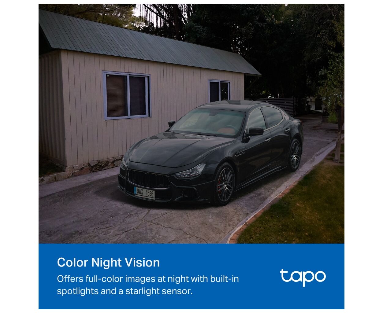 Вместо черно-белых изображений Tapo C425 предлагает полноцветные изображения ночью благодаря встроенным прожекторам и датчику звездного света, обеспечивающим детализированность в условиях низкой освещенности.