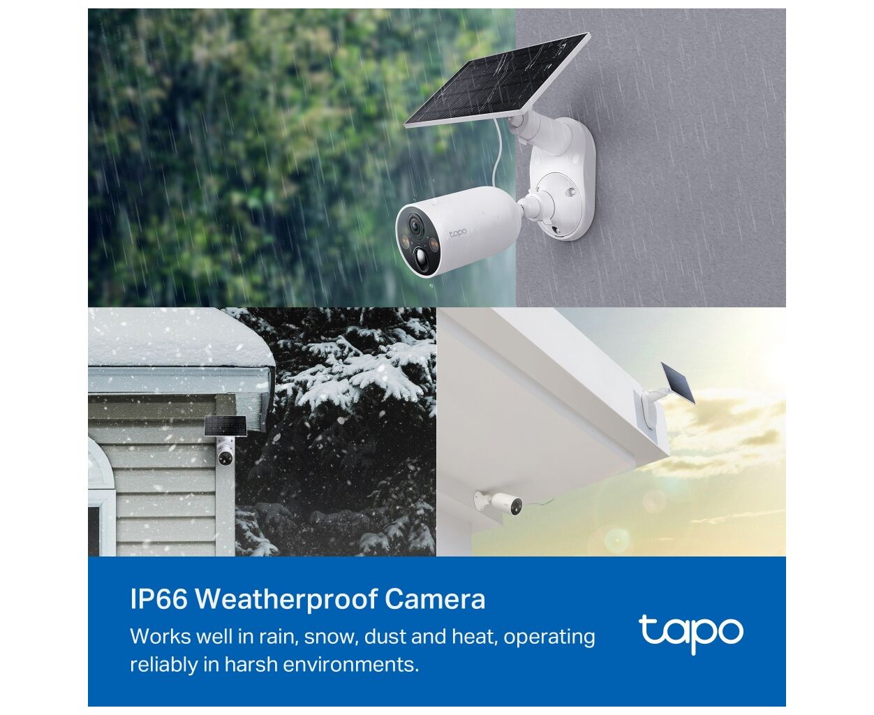 Tapo C425 KIT защищена от пыли и струй воды, имеет рейтинг IP66 для Tapo C425 и рейтинг IP65 для солнечной панели. Она хорошо работает в дождь, снег, пыль и жару, надежно функционируя при температурах от -20 до 45 °C (-4 °F-112 °F).