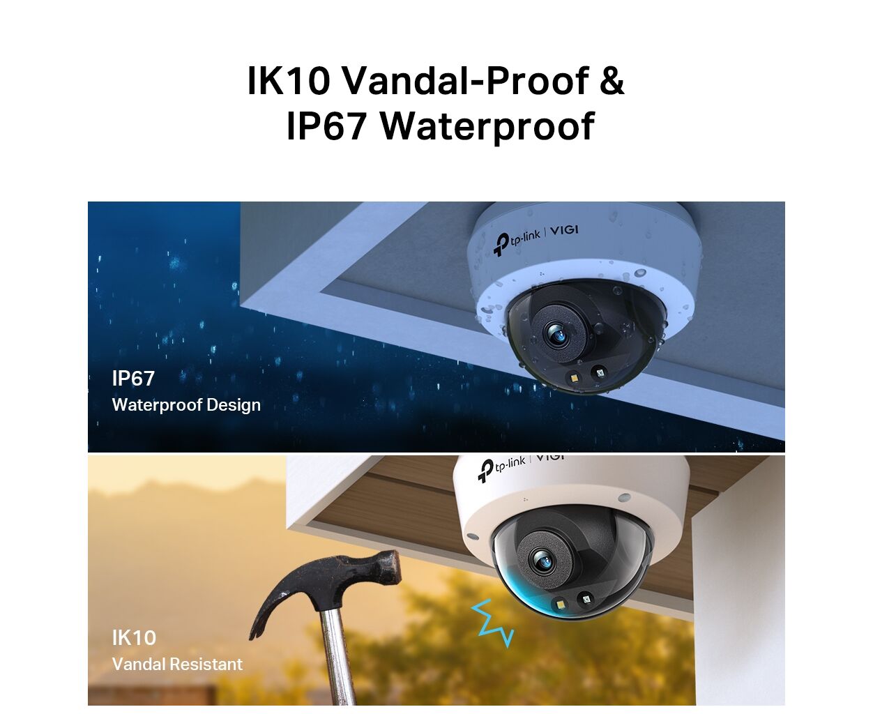 Защита от экстремальных погодных условий и вандализма - это основа надежности VIGI C240-2.8. Она оснащена прочным пластиковым корпусом, соответствующим стандартам IK10 и IP67, гарантирующим защиту от механических повреждений и пыле- и водонепроницаемость. Это делает камеру оптимальным решением для любой среды с температурным диапазоном от -30°C до +60°C и максимальной влажностью до 95%.