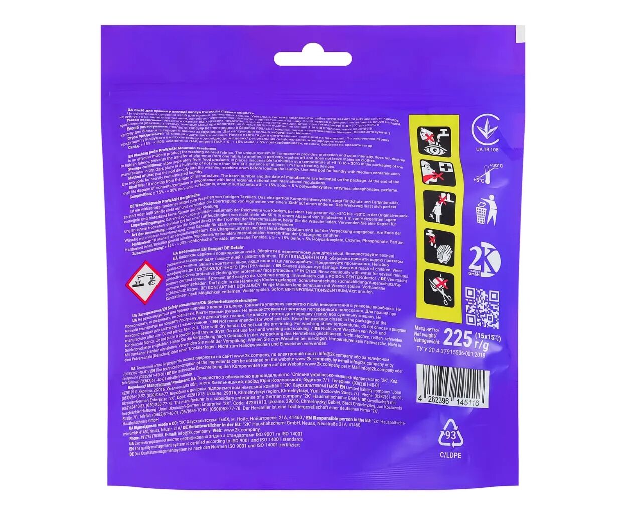 Описание Капсулы для стирки Pro Wash Color Горная свежесть 15 шт. (4823128002284)
