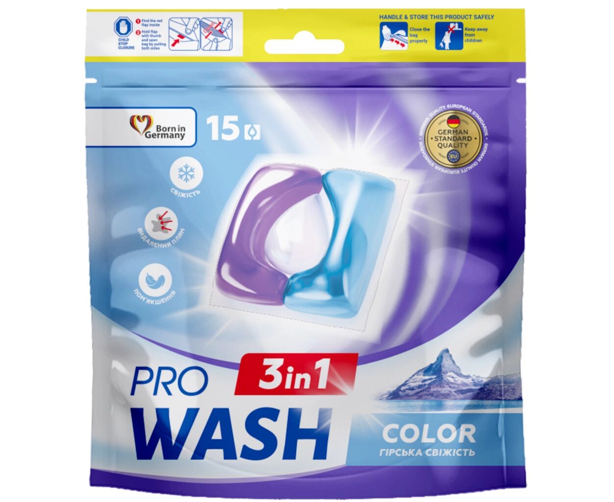Капсулы для стирки Pro Wash Color Горная свежесть 15 шт. (4823128002284)