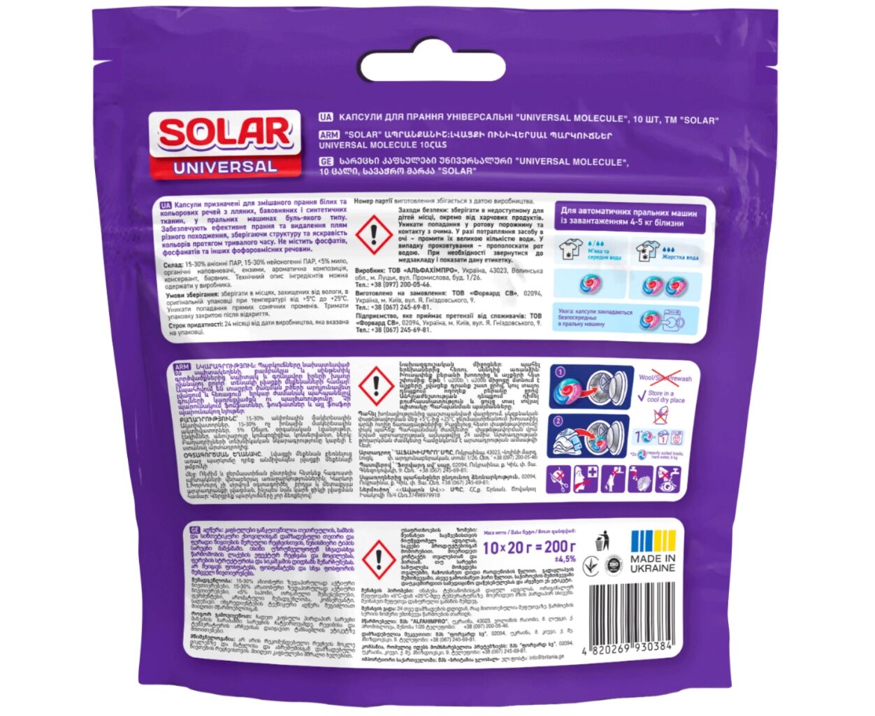 Капсулы для стирки Solar Household Universal Molecule 10 шт. (4820269930384)