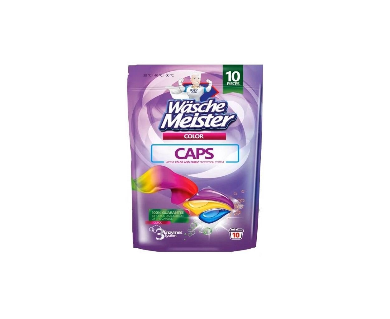 Описание Капсулы для стирки Wasche Meister Color Трехъячеечные 10 шт. (4260418936179)