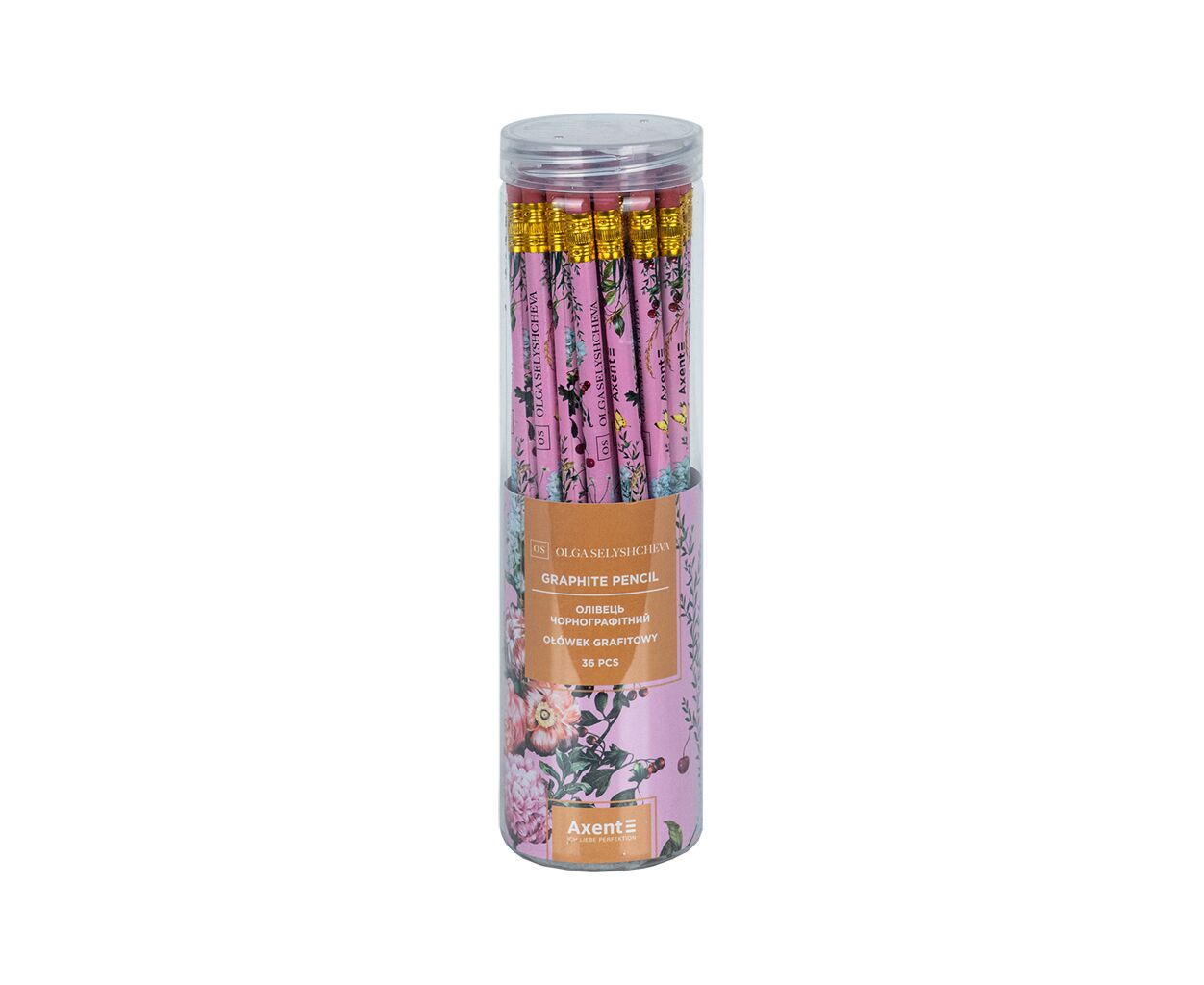 Карандаш графитный с резинкой Axent 9009/36-24-A Olga Selyshcheva, Summer — незаменим для школьников, студентов и офисных работников. Он стильный и универсальный, подходит для письма, черчения и рисования.