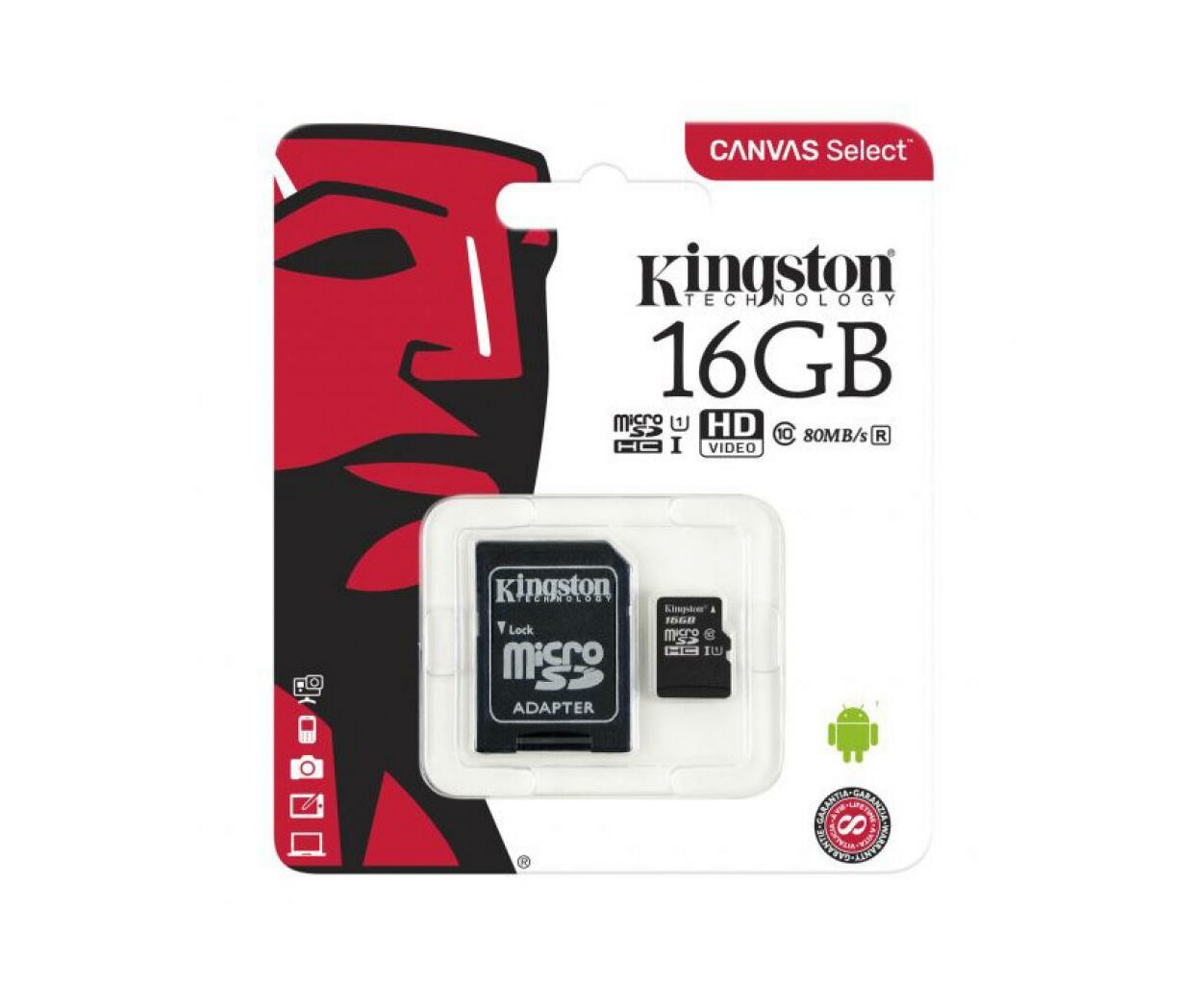 Описание Карта памяти Kingston 16GB microSDHC Class 10 Canvas Select Plus 100R A1 (SDCS2/16GB)
