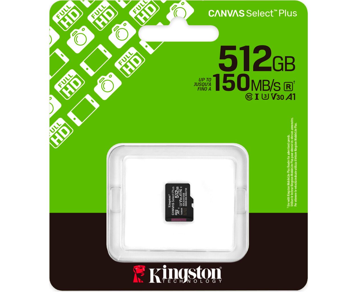 Карта памяти Kingston 512GB microSDXC class 10 UHS-I U3 V30 A1 Canvas Select Plus (SDCS3/512GBSP)