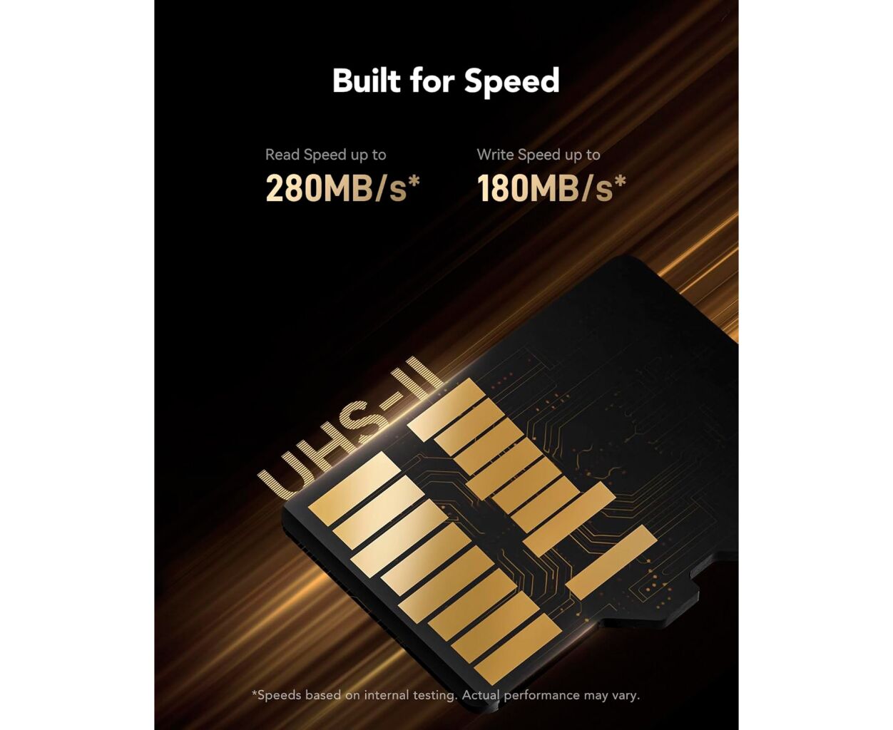 Карта пам'яти Lexar 256GB microSDXC — это воплощение скорости, надежности и вместительности, созданное для настоящих профессионалов. С объемом 256 ГБ и классом UHS-II, она обеспечивает беспрецедентную производительность, что делает её идеальной для дронов, экшен-камер и современных портативных устройств. Благодаря максимальной скорости чтения до 280 МБ/с, вы легко передадите большие файлы, такие как видео в формате 4K UHD или ресурсоёмкие игры, быстро и эффективно.