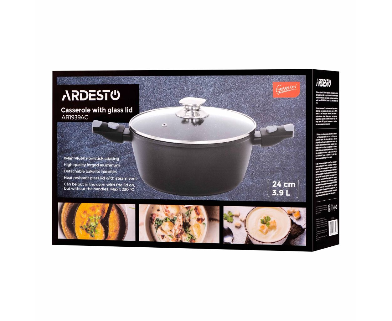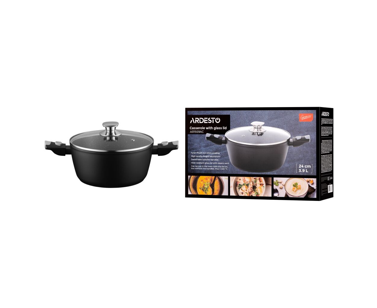 Описание Кастрюля Ardesto Gemini Bari, 3.9л, алюміній, чорний (AR1939AC)