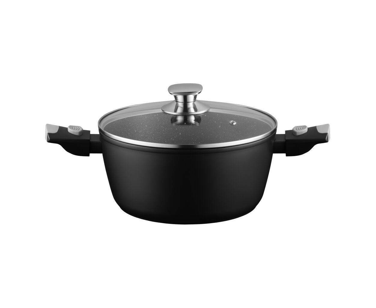 Кастрюля ARDESTO Gemini Bari – надежная посуда для приготовления больших порций. Черный цвет изделия придает выразительность, а дизайн – чувство упорядоченности на кухне. Кованый алюминий обеспечивает равномерное распределение тепла, а двухслойное мраморное покрытие Xylan Plus не дает шансов пригоранию. Всё сбалансировано для стабильной работы. Съемную бакелитовую рукоятку легко отсоединить перед запеканием в духовке (до 220 °C), а стеклянная крышка с отверстием для пара и элементами из нержавеющей стали позволяет контролировать процесс без потери тепла. Совместима с газовыми, электрическими, стеклокерамическими, галогенными и индукционными плитами. Кастрюлю легко очищать в посудомоечной машине.