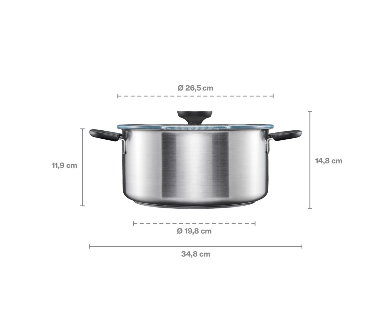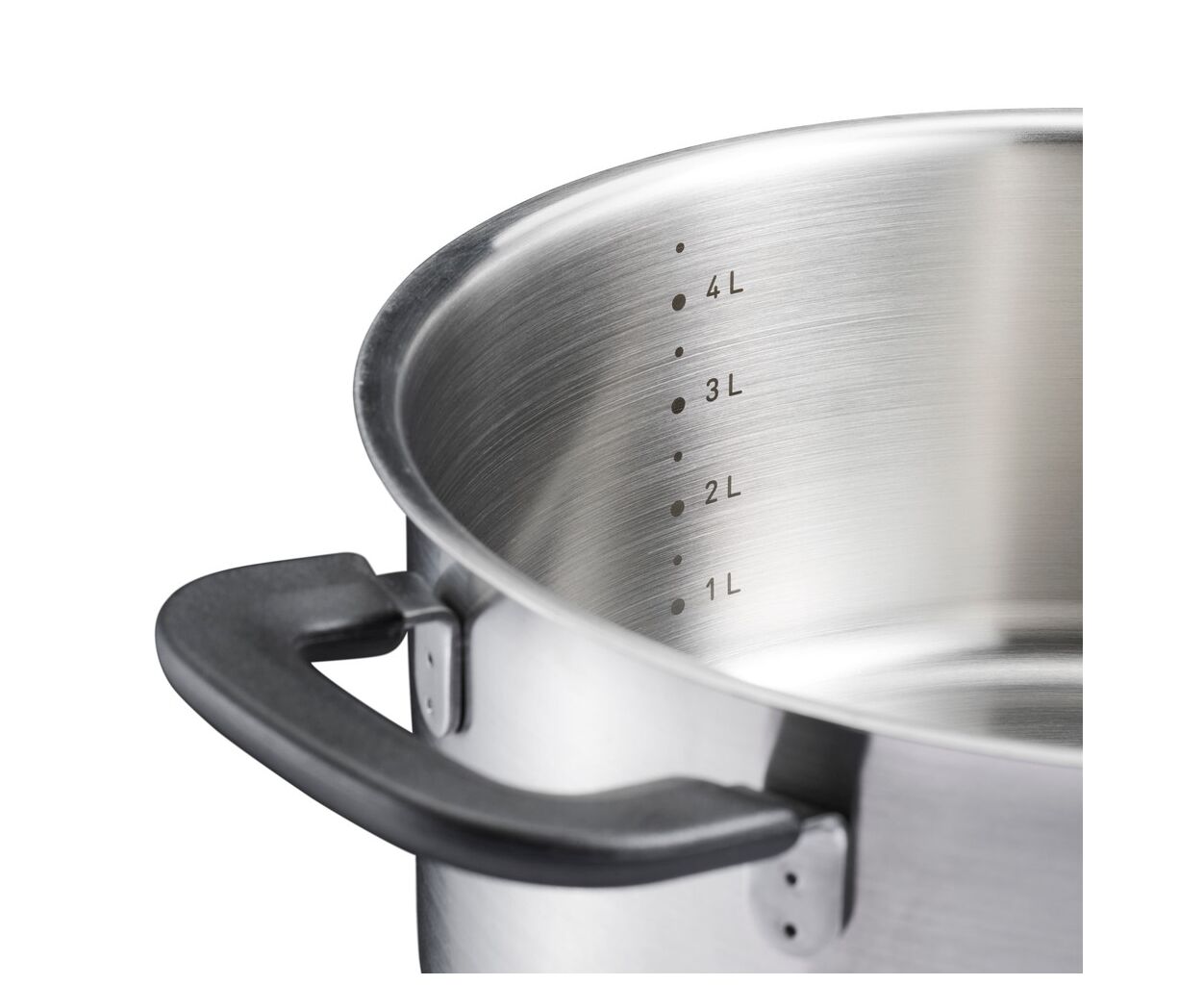 Кастрюля с крышкой Fiskars Functional Form идеально подходит для приготовления многих ежедневных блюд, особенно супов и рагу, риса и других круп. Кастрюля объемом 3 л на 90% изготовлена из прочной переработанной нержавеющей стали и может использоваться на всех плитах, включая индукционные. Кастрюля оснащена внутренним индикатором жидкости и стеклянной крышкой. Продуманная конструкция, крышка с контролем кипения и встроенное сито, что позволяет более точно порционировать. Крышка имеет простой дизайн ручки и функцию контроля кипения, а плоская форма делает ее очень удобной для хранения. Кастрюлю легко мыть, можно мыть в посудомоечной машине, а также использовать в духовке при температуре до 150°C. Предназначен для всех типов плит.