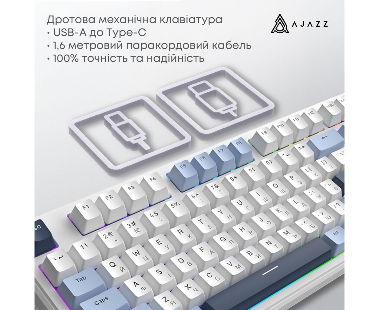 Описание Клавиатура Ajazz AK870 V2 Flying Fish Switch USB UA White/Blue (AK870-V2-FF-BWB)