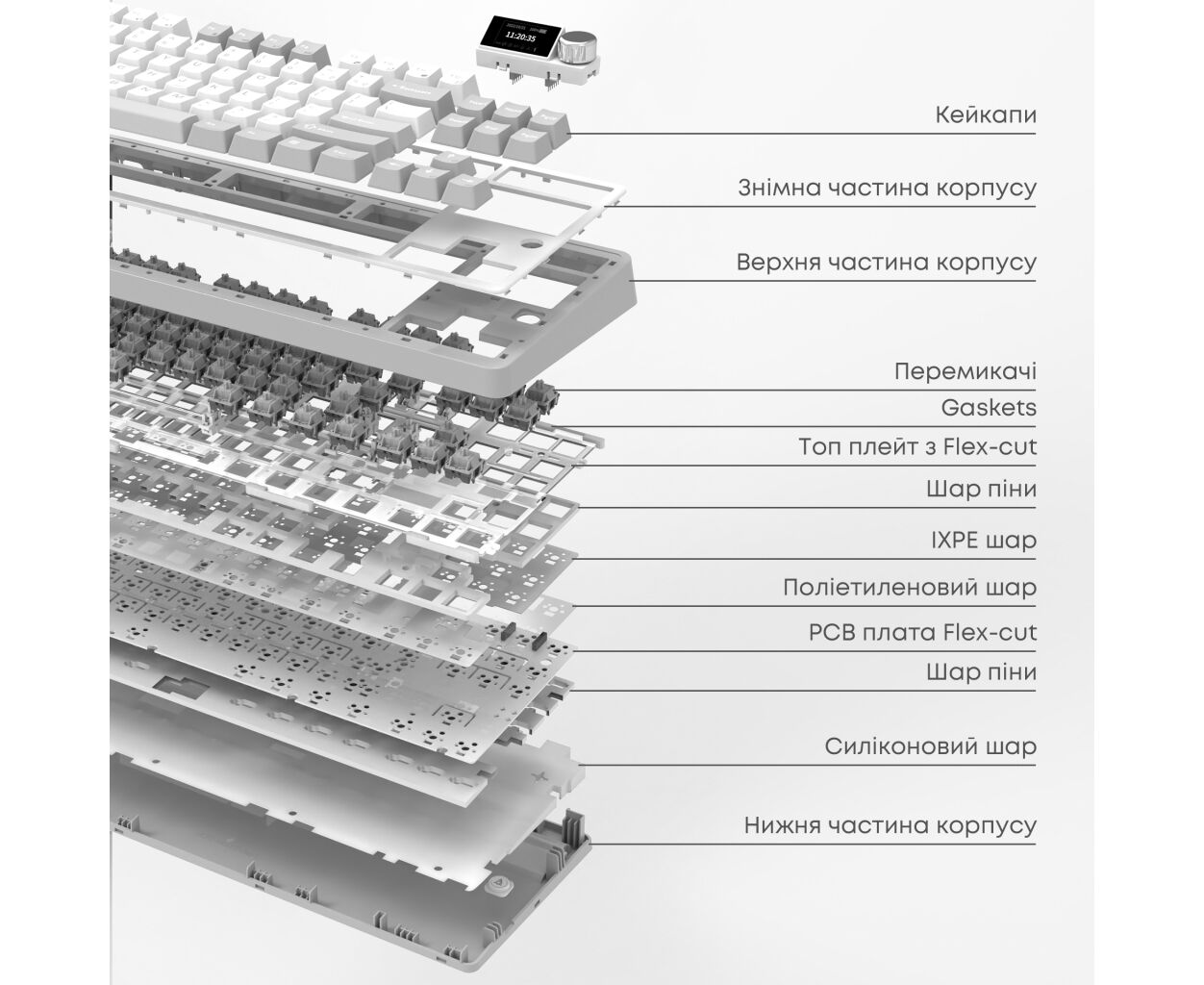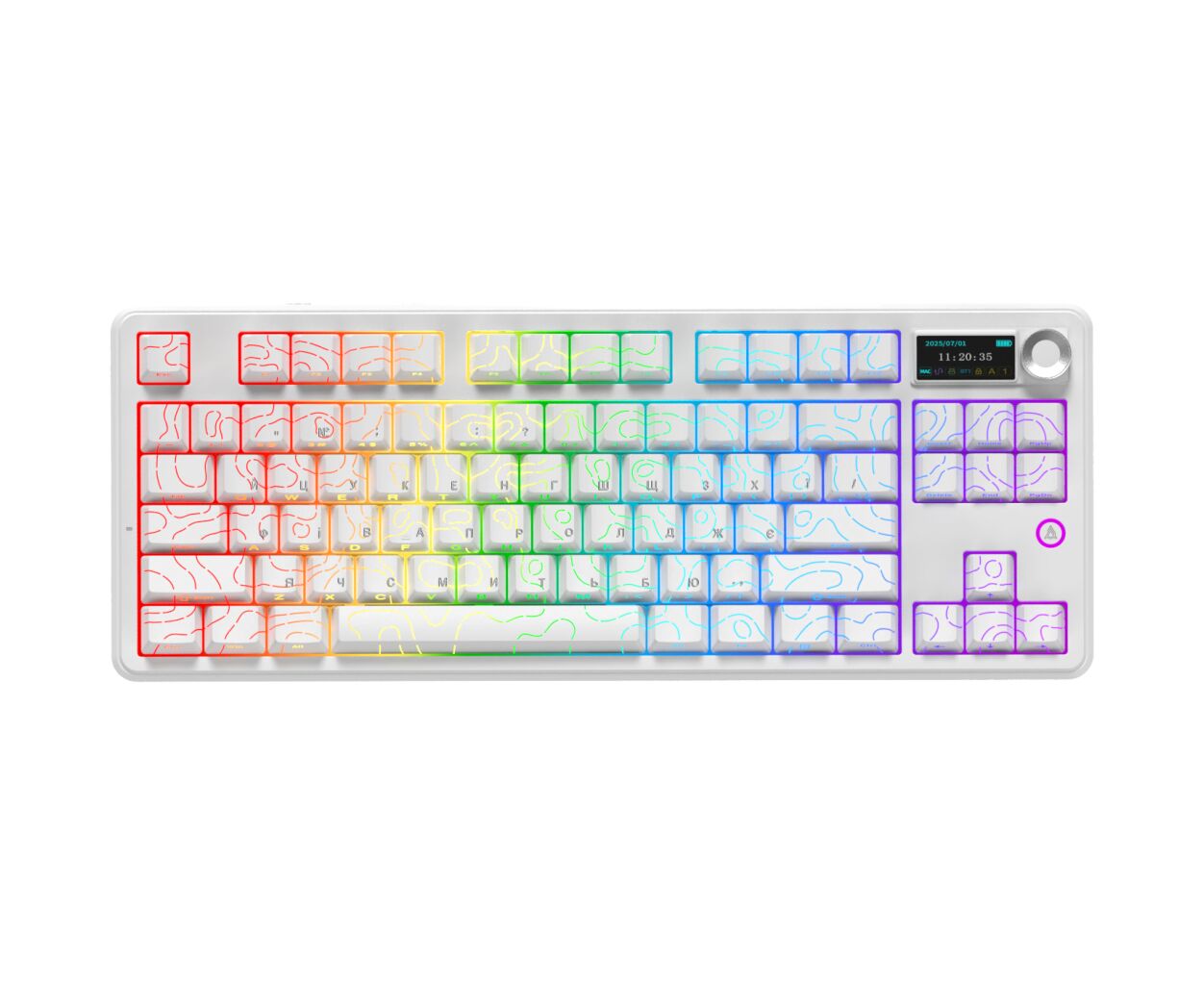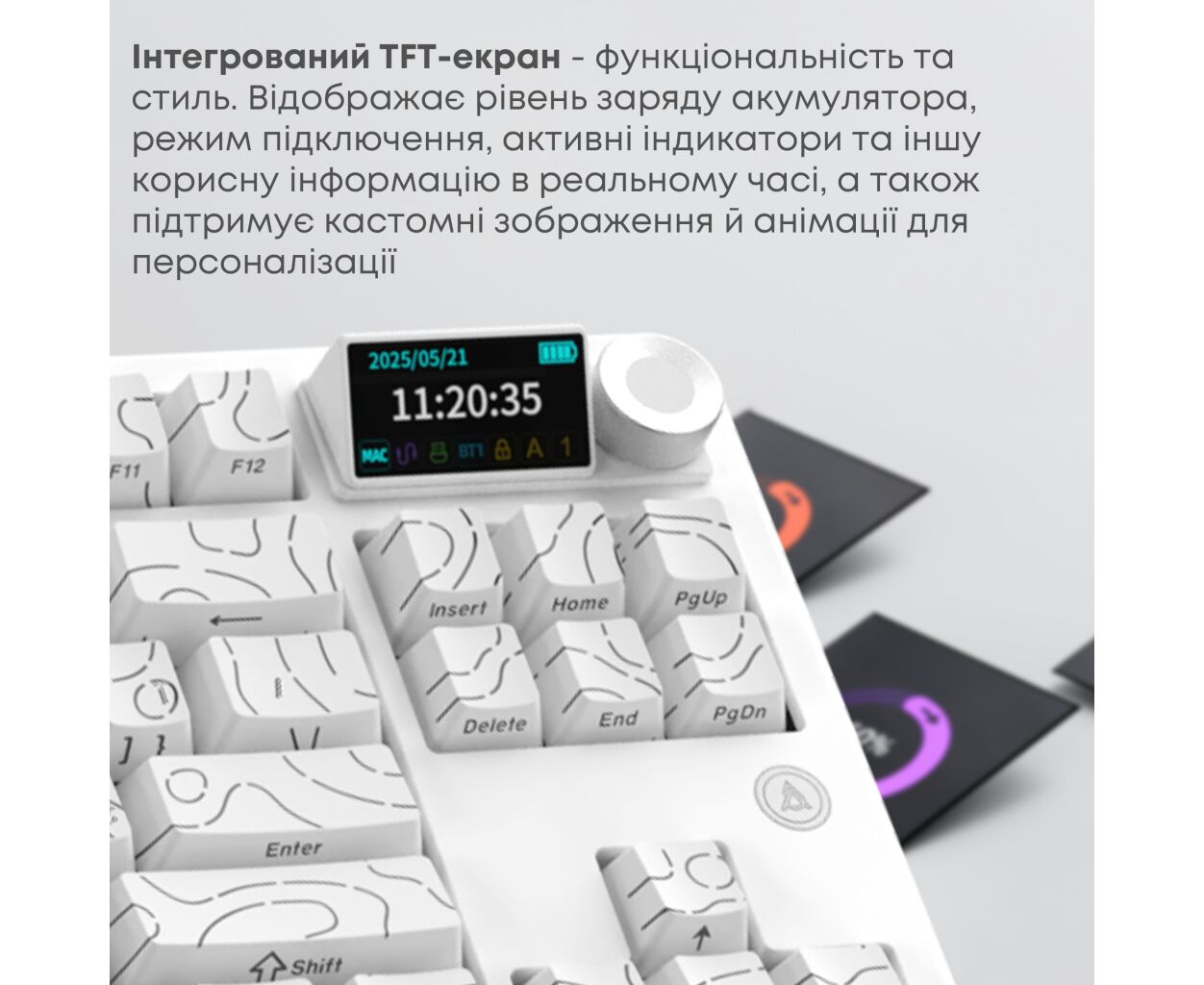 Дополнительным преимуществом модели является 1.14-дюймовый TFT цветной экран с регулятором громкости, который расширяет возможности управления и подчеркивает современный характер клавиатуры.