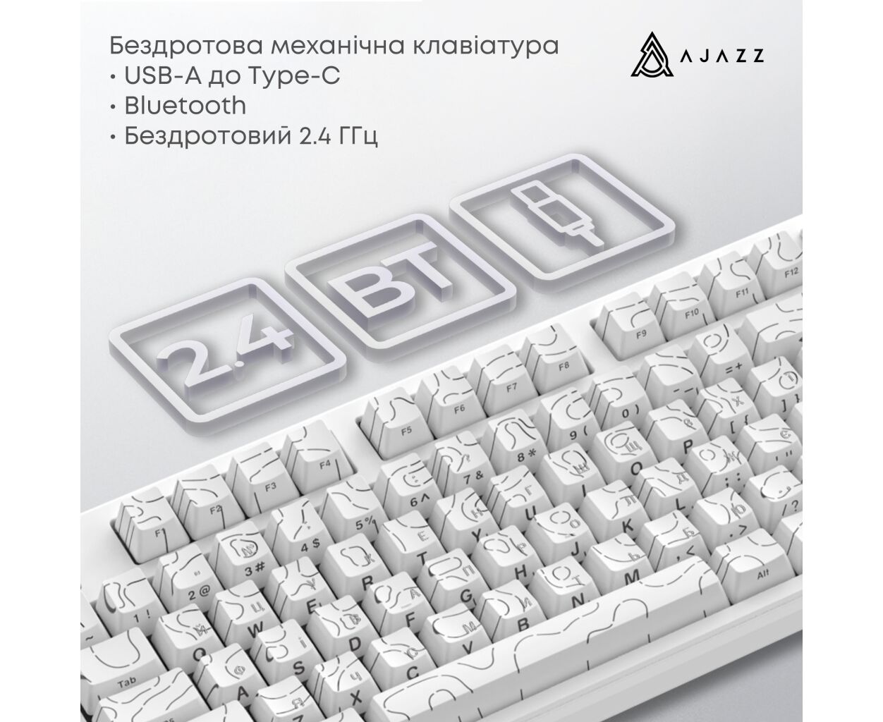 Описание Клавиатура Ajazz AK870 V2 Maillard Switch Wireless/Bluetooth/USB UA White (AK870-V2-S-W)