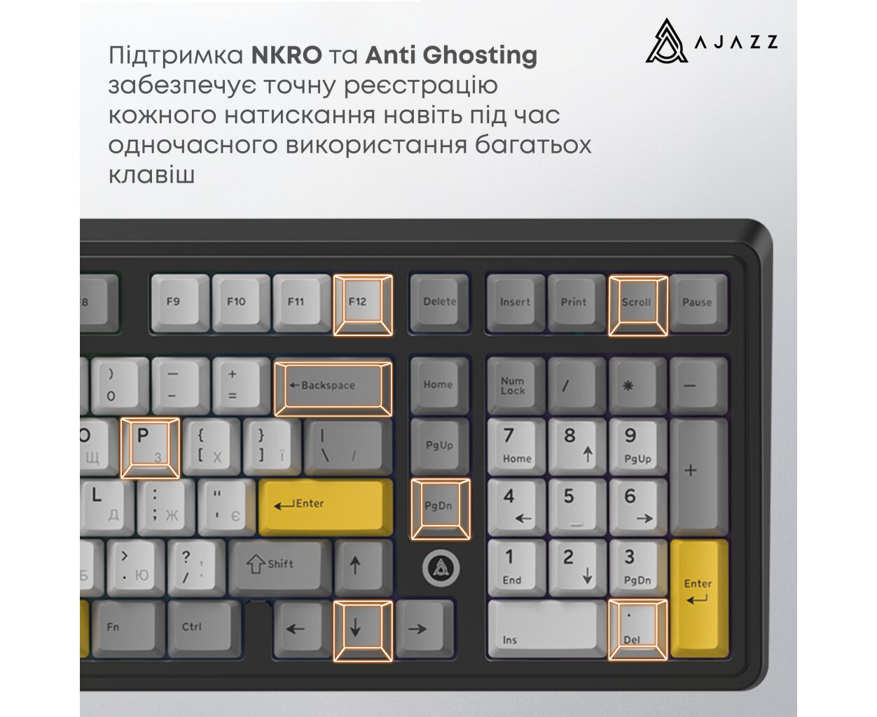 Характеристики Клавиатура Ajazz AK980 MAX Magnetic Switch USB UA Black/Grey/Yellow (AK980-MAX-M-BGY)