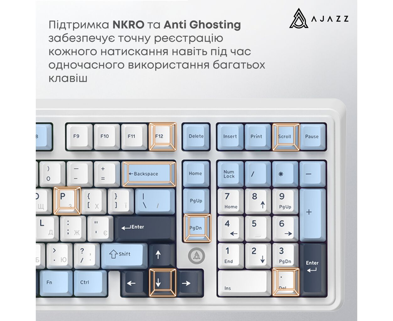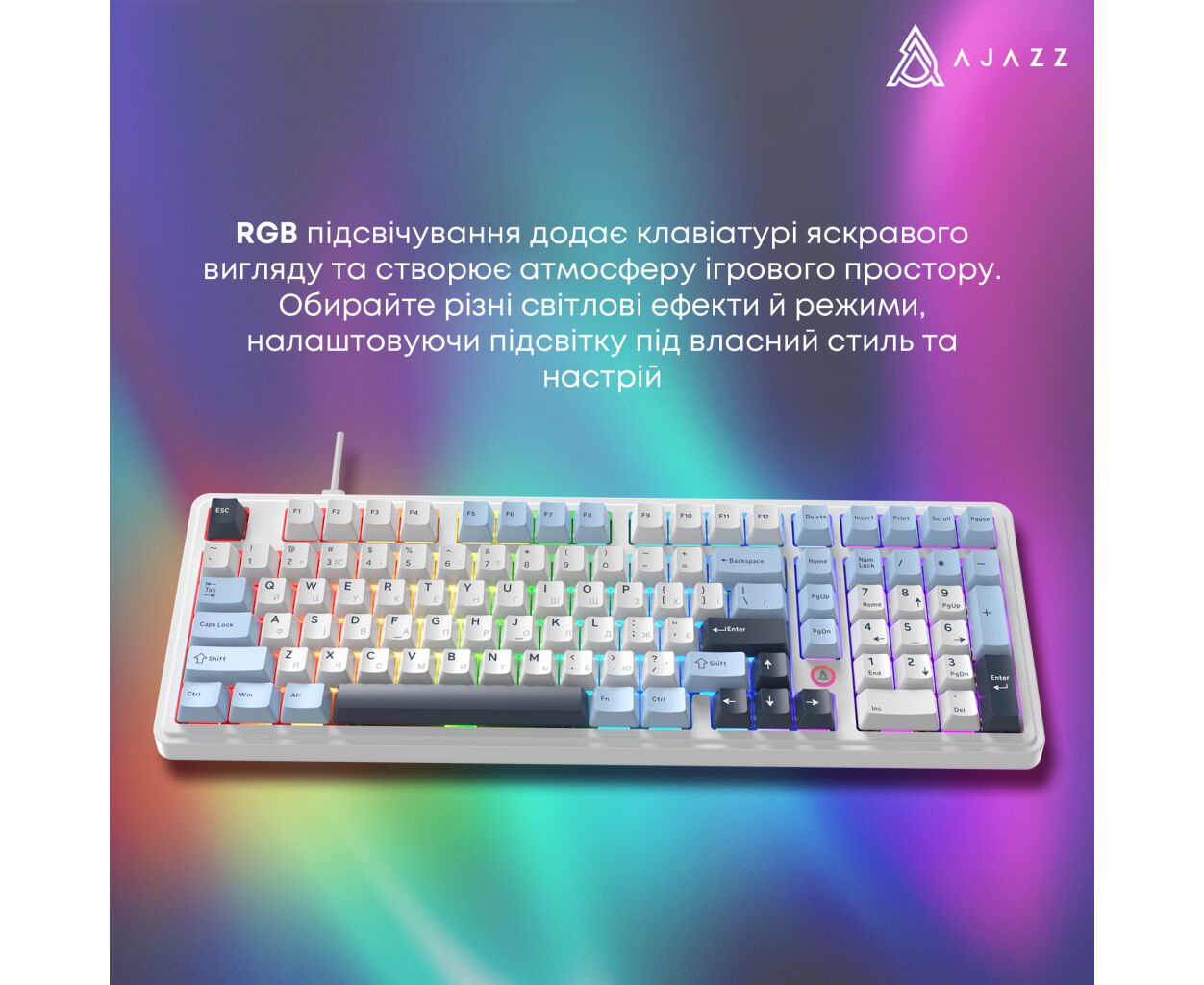Ajazz AK980 MAX имеет двуязычную раскладку - английскую и украинскую, что делает её универсальной для всех пользователей, а интерфейс подключения USB обеспечивает стабильное и надежное соединение. Совместимость с различными операционными системами, включая Chrome OS, Windows, Android и Mac OS, позволяет использовать эту клавиатуру на различных платформах.