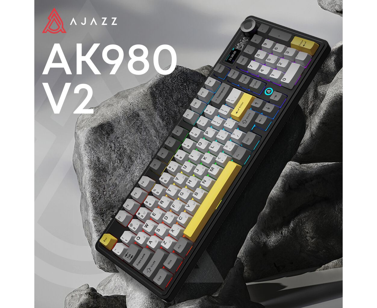 Описание Клавиатура Ajazz AK980 V2 Gift Switch V2 Wireless/Bluetooth/USB UA Black/Grey/Yellow (AK980-V2-G-BGY)