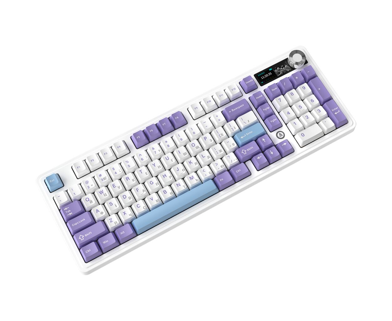 Ajazz AK980 V2 Gift Switch V2 — это уникальная механическая клавиатура, объединяющая игровые и мультимедийные функции с безупречным качеством исполнения. Оформленная в элегантных бело-синих цветах, эта клавиатура сразу привлекает внимание своим современным дизайном и эргономичной Gasket-конструкцией, нацеленностью на максимальный комфорт при длительном использовании.