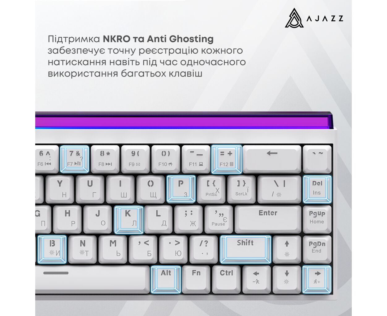 Характеристики Клавиатура Ajazz NK68 Red Switch USB UA White (NK68-R-W)