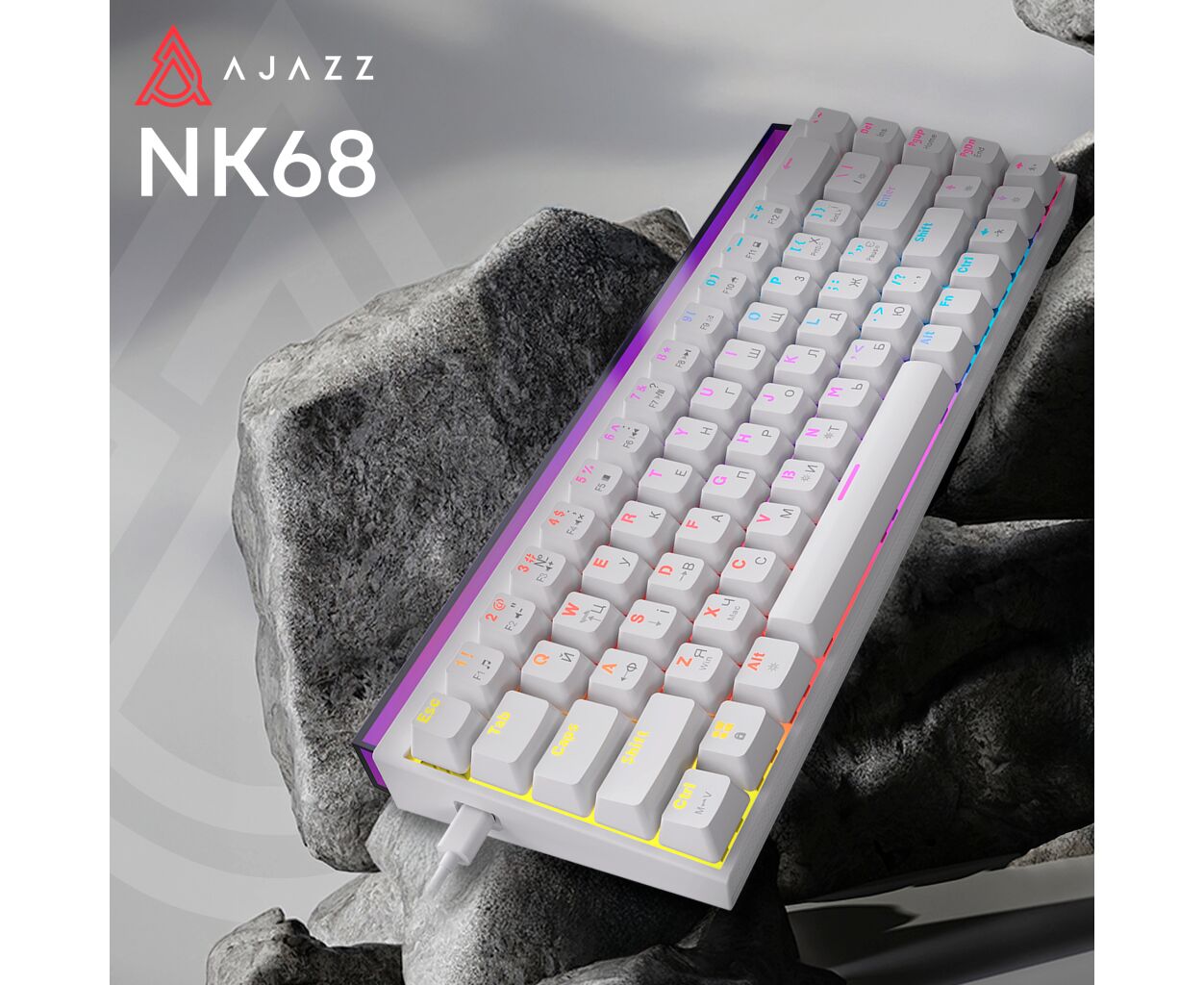 Ajazz NK68 – компактная проводная механическая клавиатура в 65% форм-факторе, сочетающая современный дизайн, легкую конструкцию и комфортный механический набор для ежедневного использования.