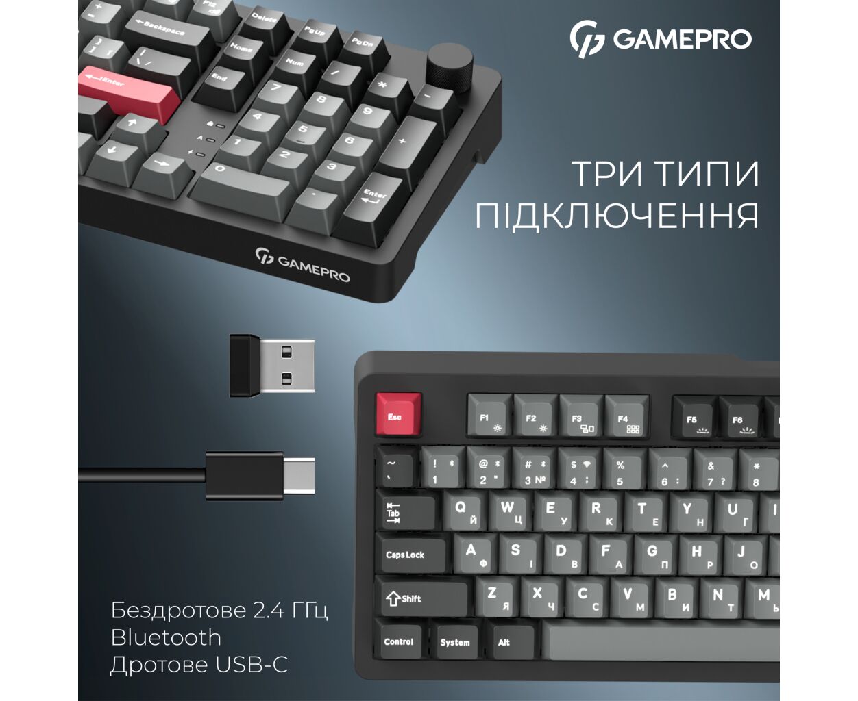 Описание Клавиатура GamePro Asgard Drakkar Keychron Super Red Switch Wireless/Bluetooth/USB UA Black (MK305BK)