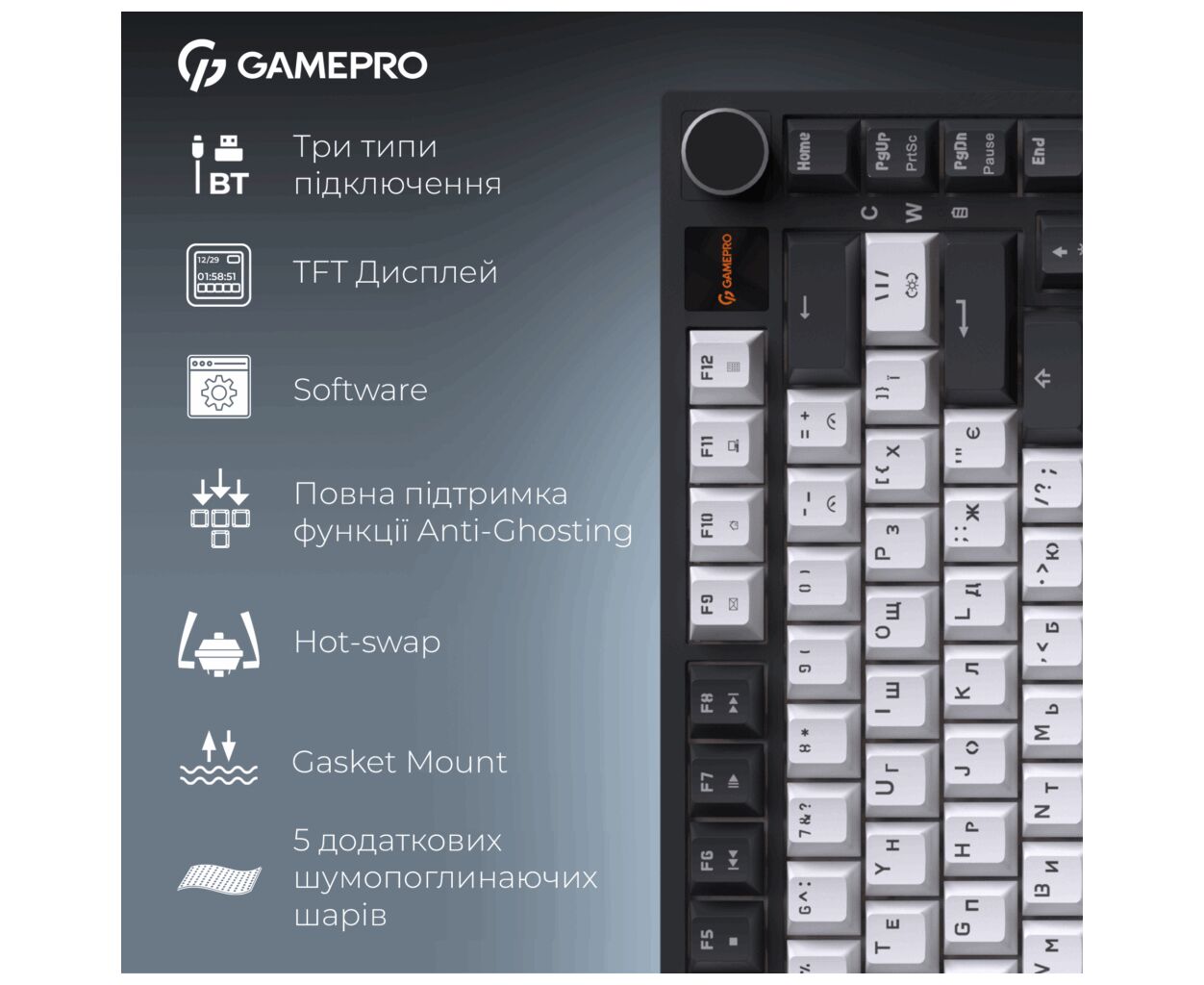 Клавиатура GamePro Asgard Valhalla Pro MK160B-D-Pro Rainy Switch Wireless/Bluetooth/USB UA Black (MK160B-D-Pro)