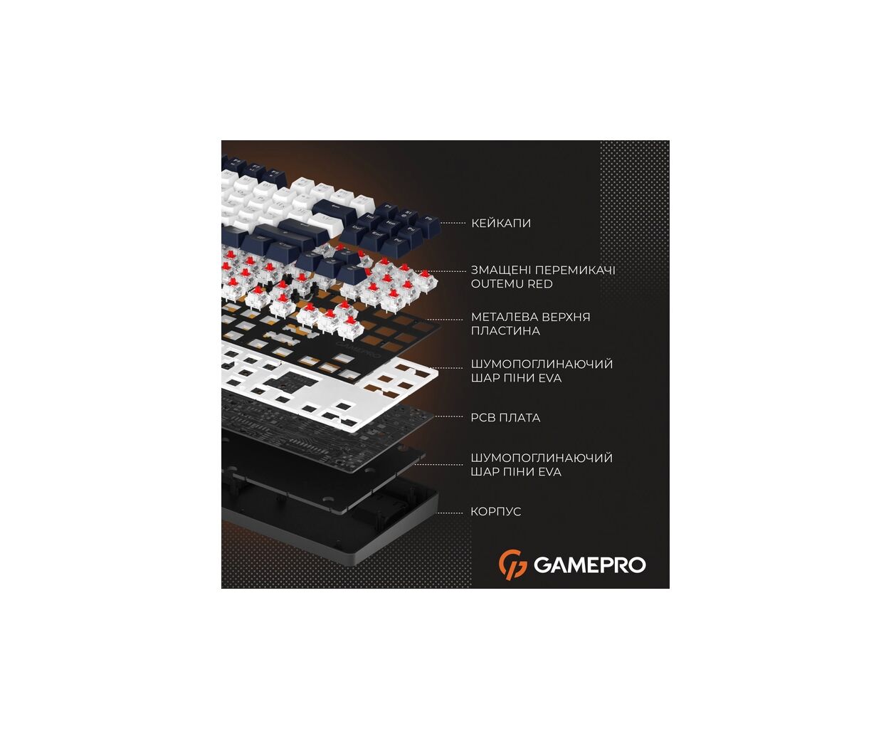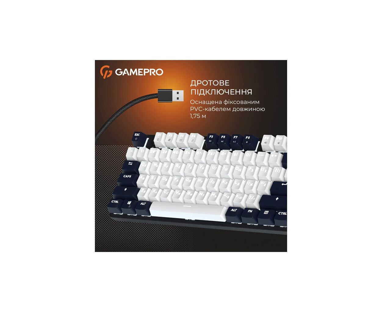 GamePro Genesis Metallic MK110B поддерживает подключение через USB и совместима с различными операционными системами, включая Windows, Mac OS и Linux. Формат клавиатуры TKL (без цифрового блока) позволяет сэкономить место на рабочем столе, не жертвуя удобством и контрольными возможностями.
