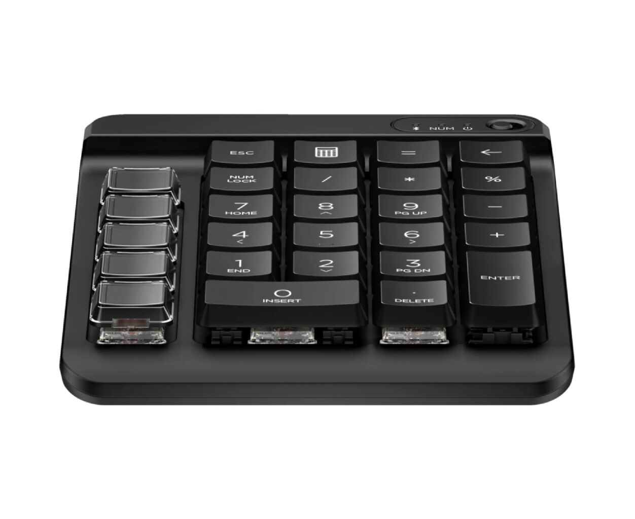 механическая, беспроводная, Bluetooth, числовая (нампад), Клавиш - 27, влагоустойчивость, программируемые клавиши, 110 х 153 х 19 мм, 256 г