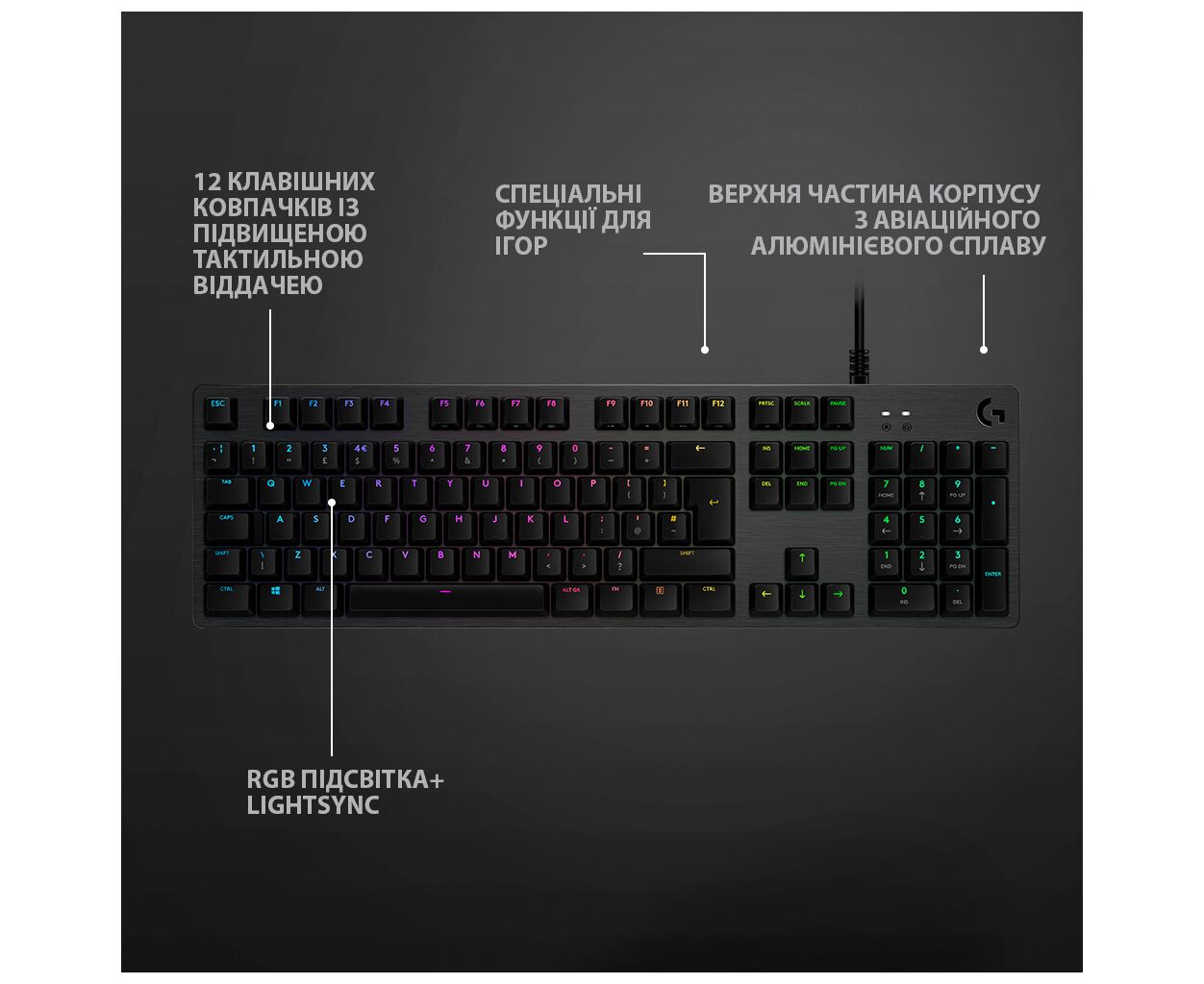 Описание Клавиатура Logitech G512 Carbon Lightsync RGB Mechanical USB Black (920-009351)