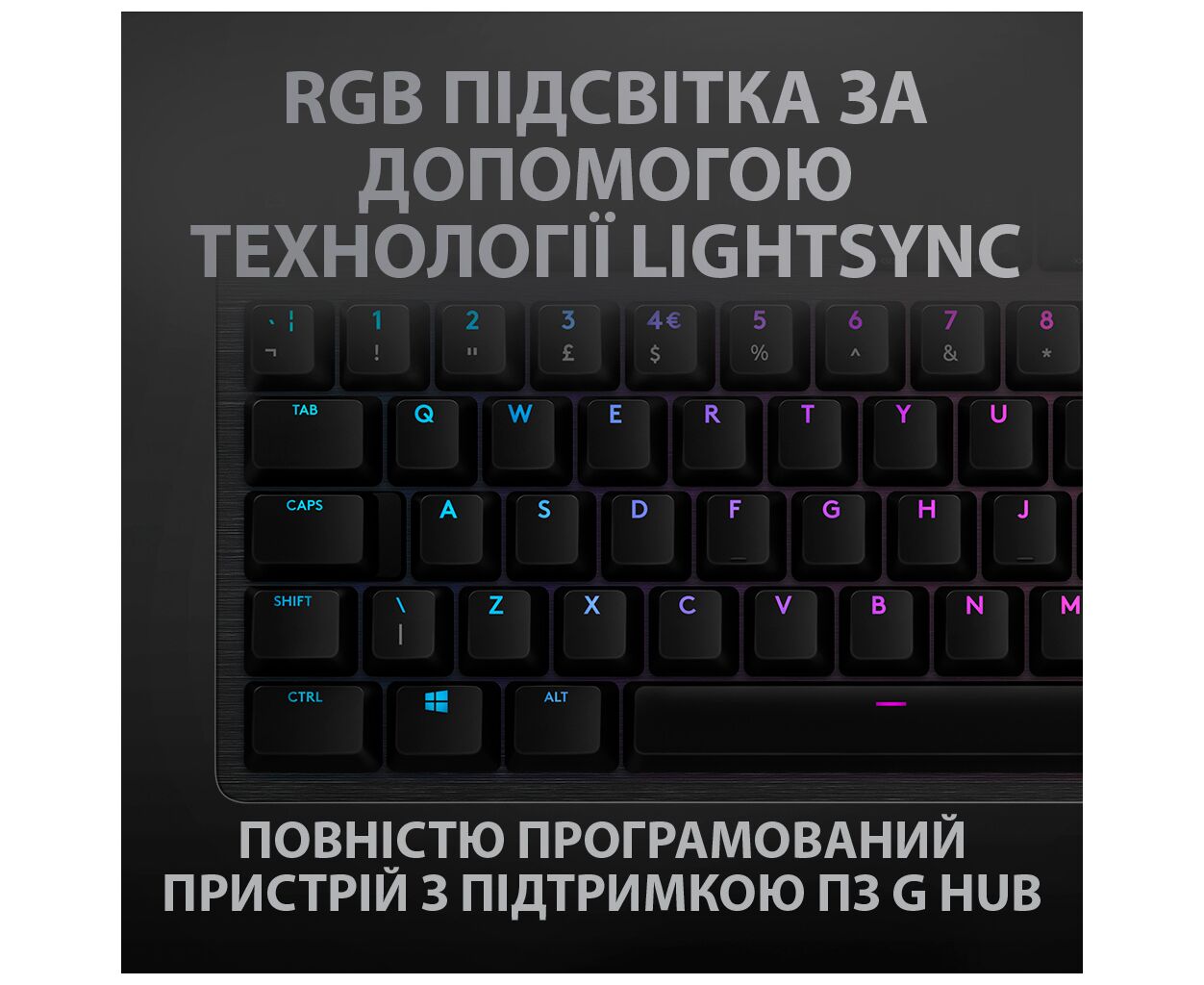 Подсветку клавиатуры G512 можно настроить, присвоив любой клавише один из 16.8 млн оттенков. Кроме пользовательских анимационных эффектов для клавиатуры можно использовать также множество эффектов с предварительно заданными параметрами. Благодаря технологии LIGHTSYNC подсветка реагирует на звуки, смену изображения на экране, а также определенные действия в играх. Все это обеспечивает эффект полного погружения в виртуальную реальность, которого невозможно достичь при использовании обычной RGB-подсветки. Для использования дополнительных настроек необходимо ПО Logitech G HUB, которое можно загрузить на странице.
