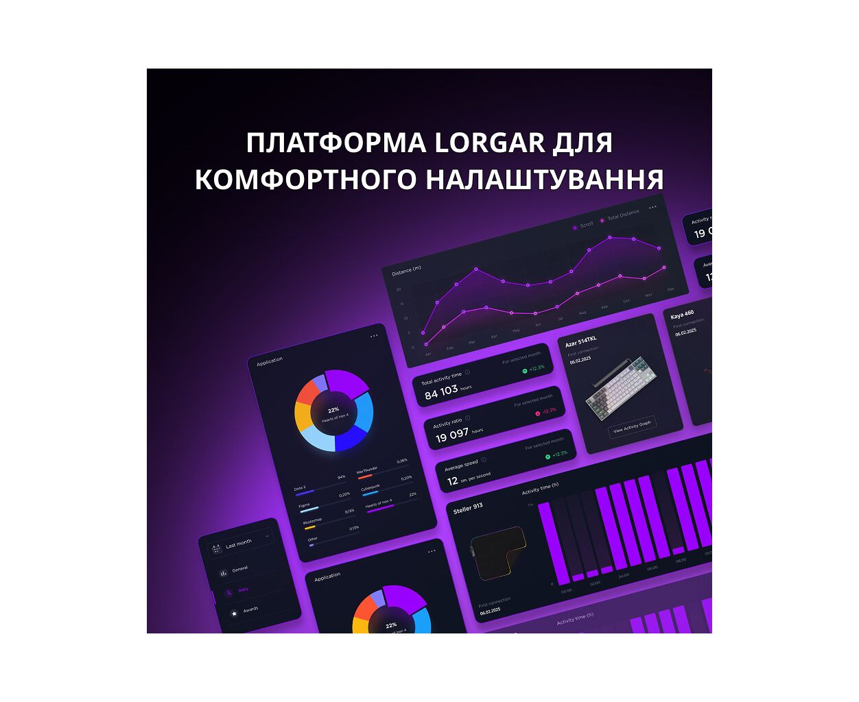 Особенно привлекательно RGB подсветка, настраиваемая в соответствии с вашими пожеланиями, добавляющая яркости и погружающая в мир игры. Использование LORGAR PLATFORM открывает множество возможностей для персонализации: синхронизируйте подсветку с другими устройствами, создавайте игровые профили, макросы и переназначайте клавиши. Эта платформа также позволяет отслеживать производительность, помогая совершенствовать игровые навыки.