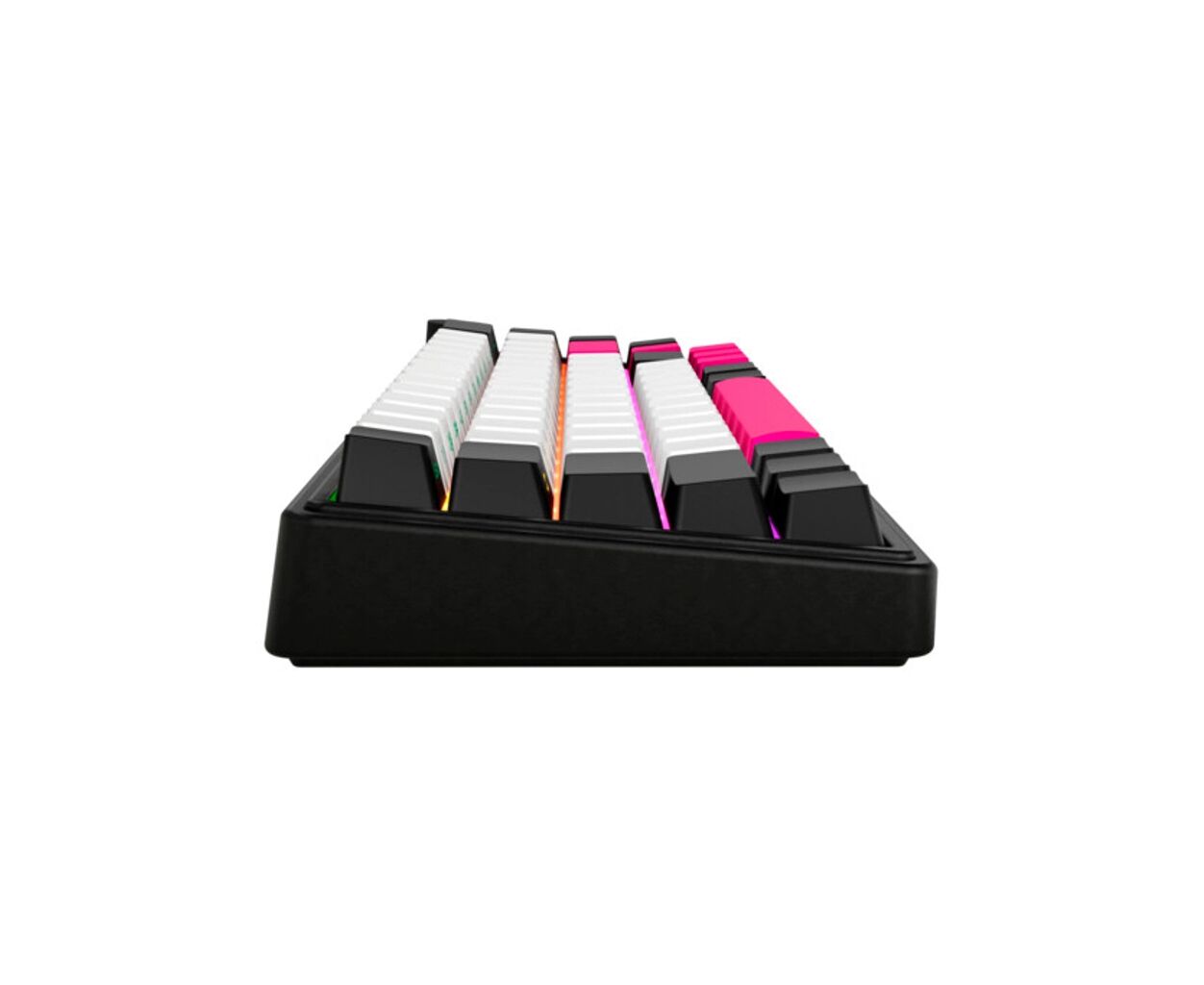 Преимущества такой компактной клавиатуры, как 65% формат с 66 клавишами, позволяют сэкономить пространство, не жертвуя при этом функциональностью. Прочные колпачки клавиш из ABS-пластика, отделанные красными акцентами, придают стильной клавиатуре эстетическое очарование.