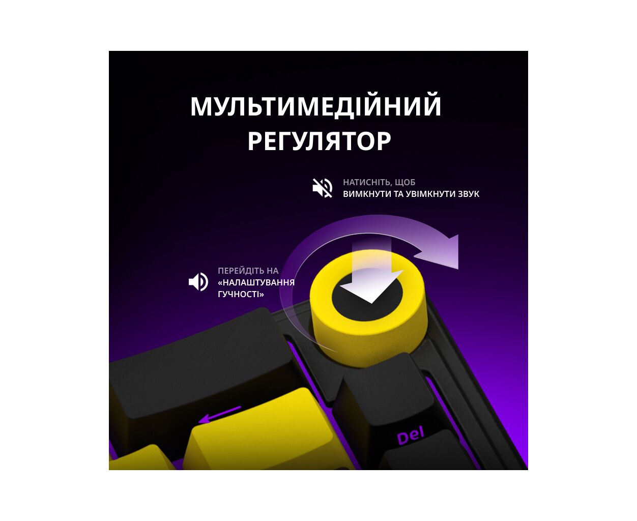 мультимедийная, с подсветкой, для телевизора, механическая, проводная, беспроводная, USB, Bluetooth, USB адаптер 2.4 ГГц, компактная, Подсветка - RGB, английская, украинская, Переключатели (Switches) - Linear Switch Toxic Purple, Клавиш - 66, сменные клавиши, Шнур - 2.3 м, 322.3 х 116.8 х 40.5 мм, 700 г