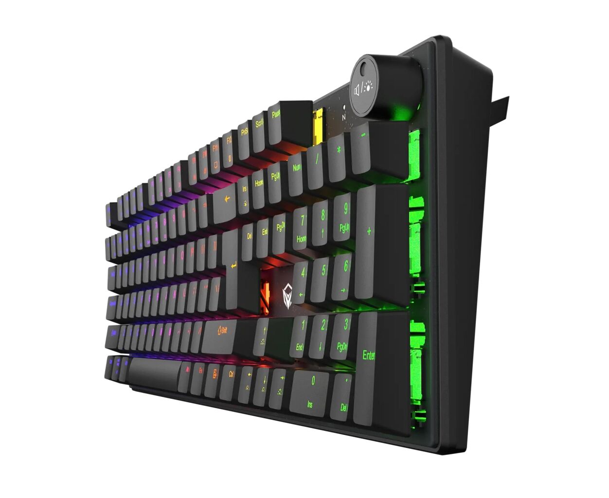 RGB-подсветка клавиш с множеством режимов, регулируемой яркостью и скоростью позволяет менять внешний вид клавиатуры в зависимости от ваших предпочтений. Кастомизируйте подсветку под свое настроение или стиль игры с помощью фирменного программного обеспечения MEETION, где вы также сможете создавать макросы и переназначать функции клавиш.