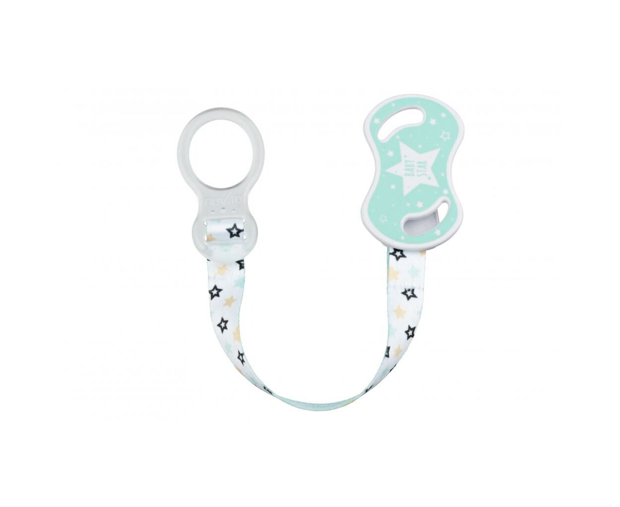 Держатель для пустышки с кольцом от итальянского бренда Nuvita, который можно использовать для младенцев с самого рождения. Подходит для пуговиц-пустышек. Держатель очень удобный и состоит из кольца и фиксатора, которые изготовлены из пластика, и текстильной ленты с узором. Безопасный и простой фиксатор крепится по принципу прищепки, и не оставляет никаких следов на детской одежде. Благодаря держателю для пустышки от Nuvita, малыш не потеряет но не испачкает пустышку, ведь она всегда будет надежно закреплена. Не содержит бисфенола А, фталатов и других вредных веществ. Не требует особых условий хранения.