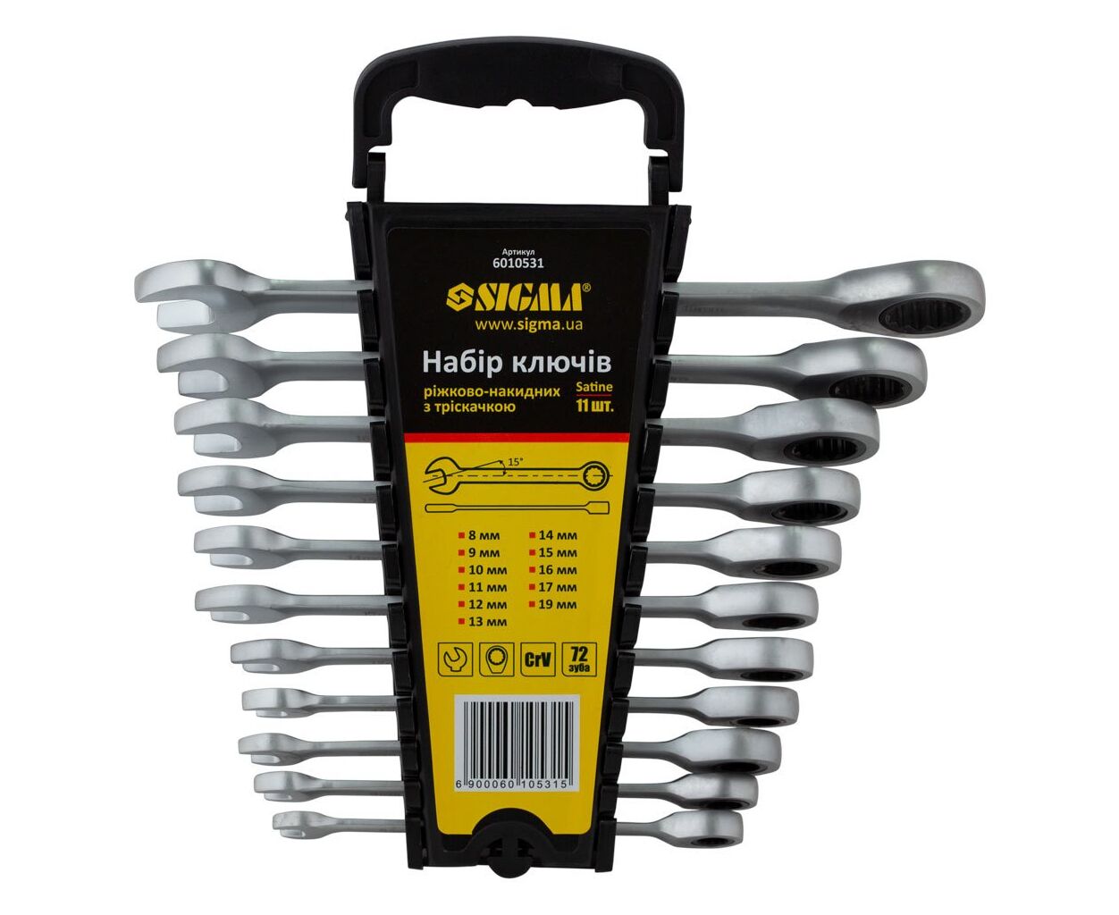 Описание Ключ Sigma набор рожково-накидных трещоточные 11шт, 8-17, 19мм CrV (6010531)