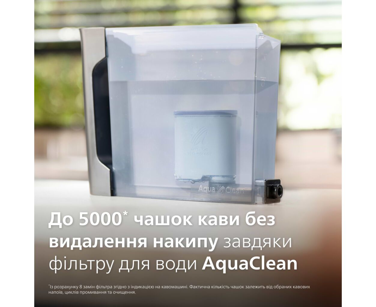 Защищает кофемашину от известкового налета. Сменив фильтр после напоминания кофемашины, вы сможете наслаждаться чистой и прозрачной водой в течение приготовления до 5000 чашек² без необходимости удалять накипь.