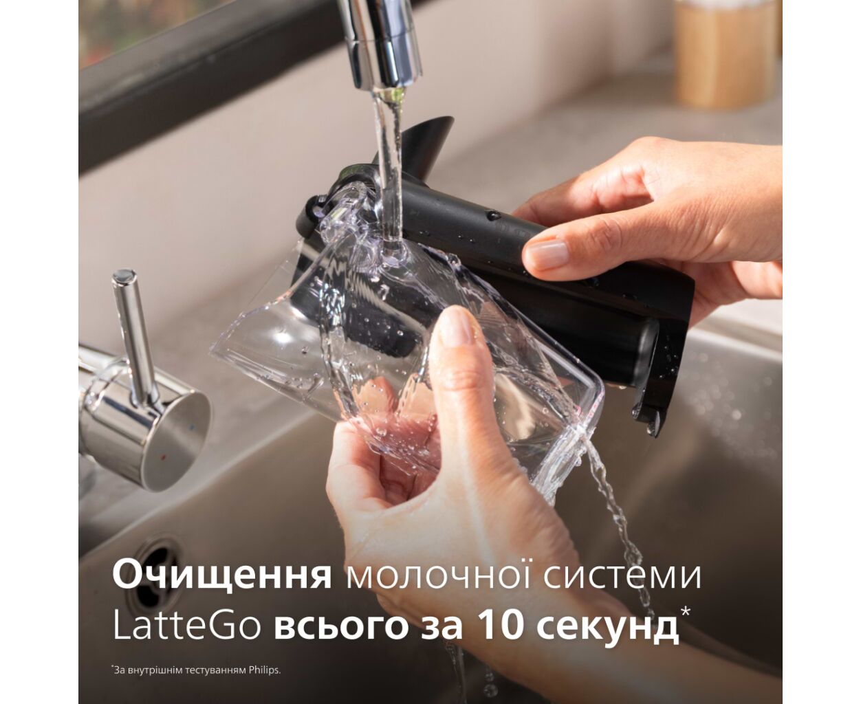 Молочная система LatteGo имеет всего 2 части, без трубочек и ее можно промыть за 10 секунд под краном или в посудомоечной машине.