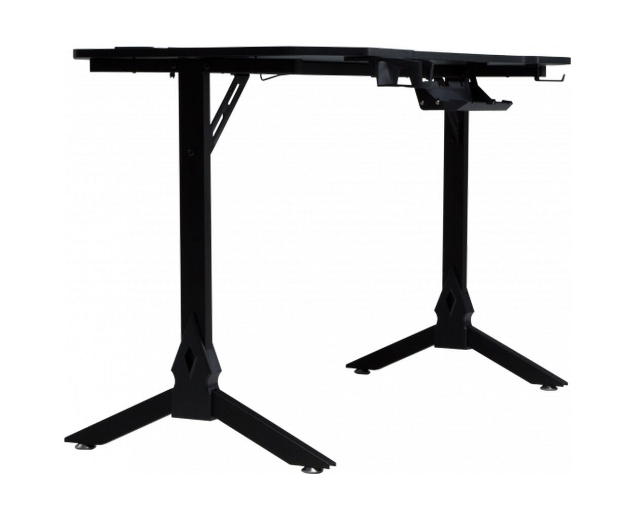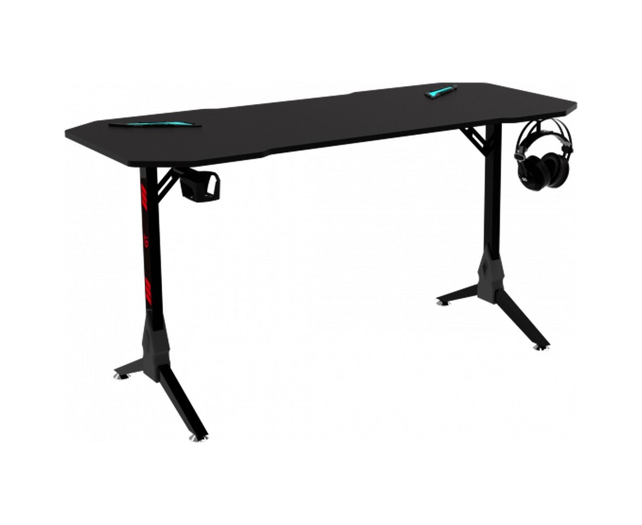 Основным акцентом этой модели является его динамичный игровой дизайн, выделяющийся среди многих аналогичных продуктов. Прямоугольная форма столешницы со скошенными углами придает столу необычный вид, который впишется в практически любой современный интерьер. В этом столе любая деталь обмыслена для комфорта и эстетики.