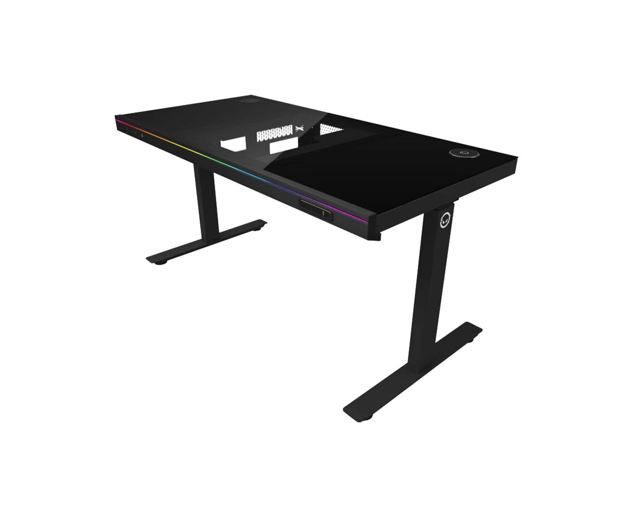 Тип - геймерский, RGB подсветка, регулировка высоты, USB-hub, кабель-менеджмент, корпус-стол, Материал - металл, стекло, Ширина - 140 см, Глубина - 67 см, Цвет - черный, Вес - 53.22 кг