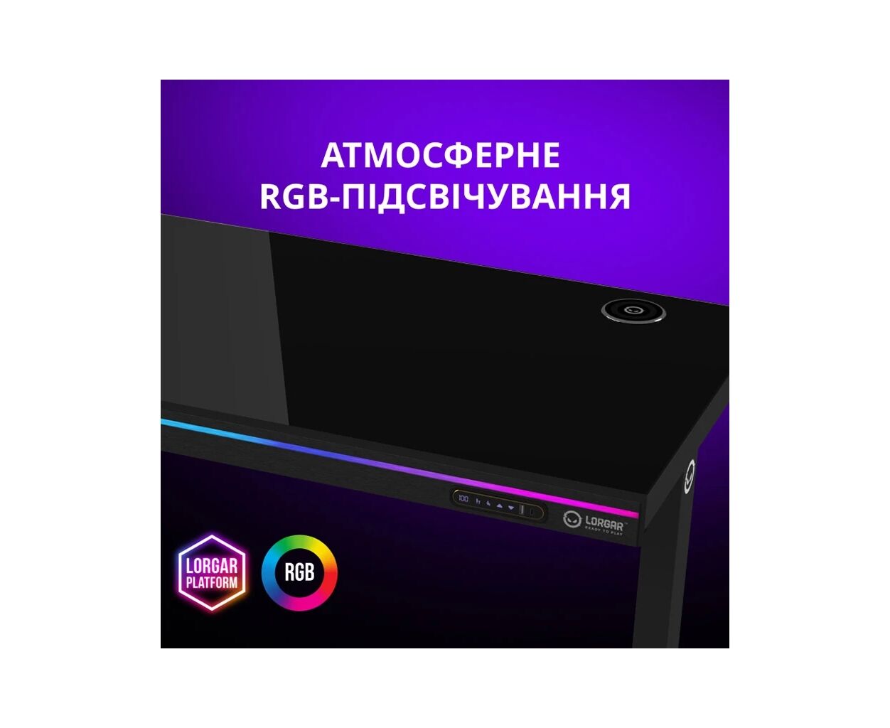 Тип - геймерский, RGB подсветка, регулировка высоты, USB-hub, Материал - металл, стекло, Ширина - 140 см, Глубина - 68 см, Цвет - черный, Вес - 46 кг