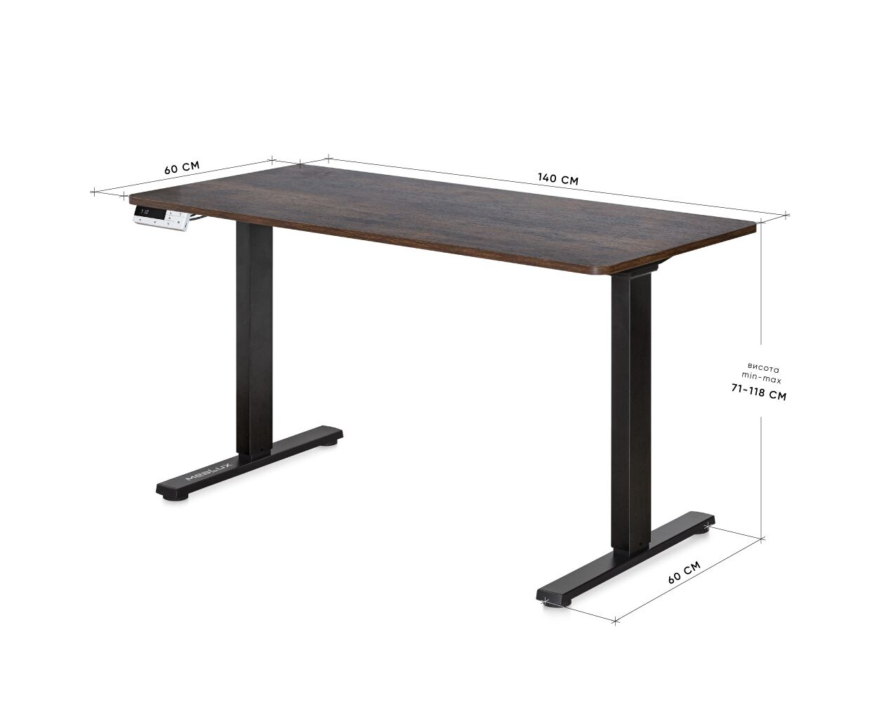 Этот стол подходит как для кресел с регулировкой высоты, так и для стандартных нерегулируемых стульев. Массивные металлические ножки обеспечивают устойчивость, а прочная конструкция выдерживает нагрузку до 120 кг. На панели управления расположены кнопки для сохранения выбранных высот, всего можно сохранить 3 положения. Теперь вам не нужно каждый раз настраивать стол под себя — достаточно нажать одну из кнопок.