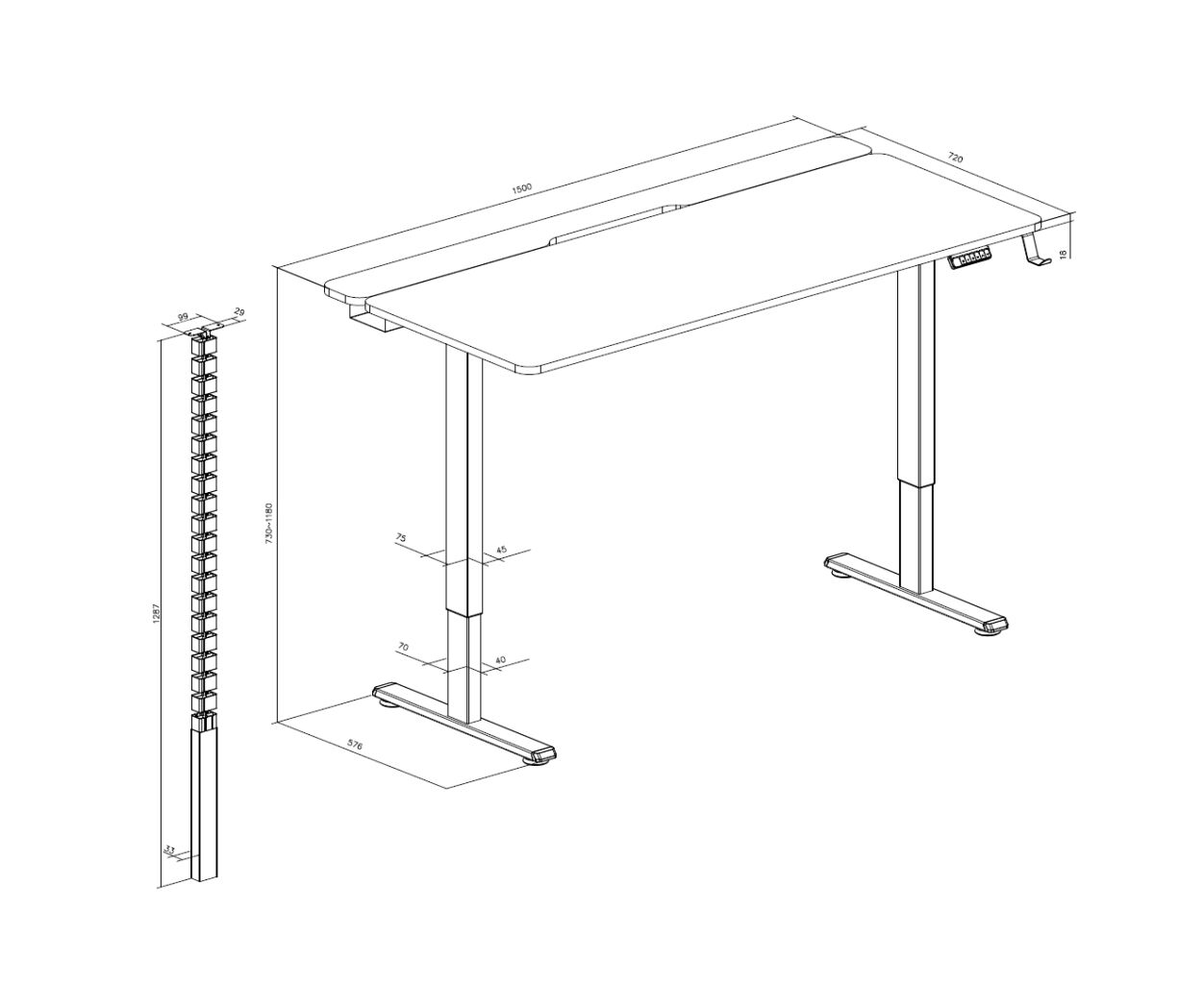 з електрорегулюванням висоти 1500 x 720 мм Black