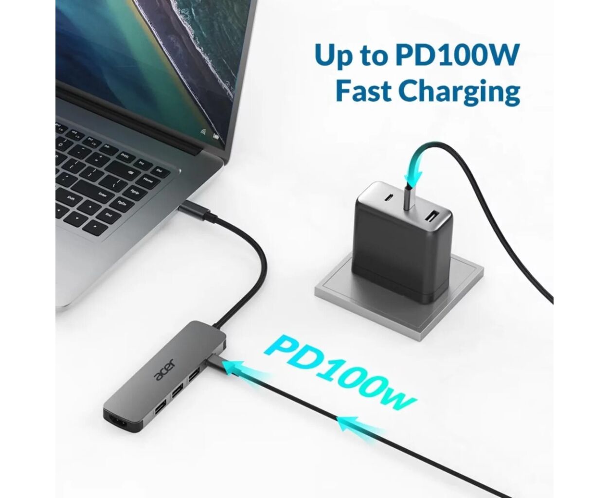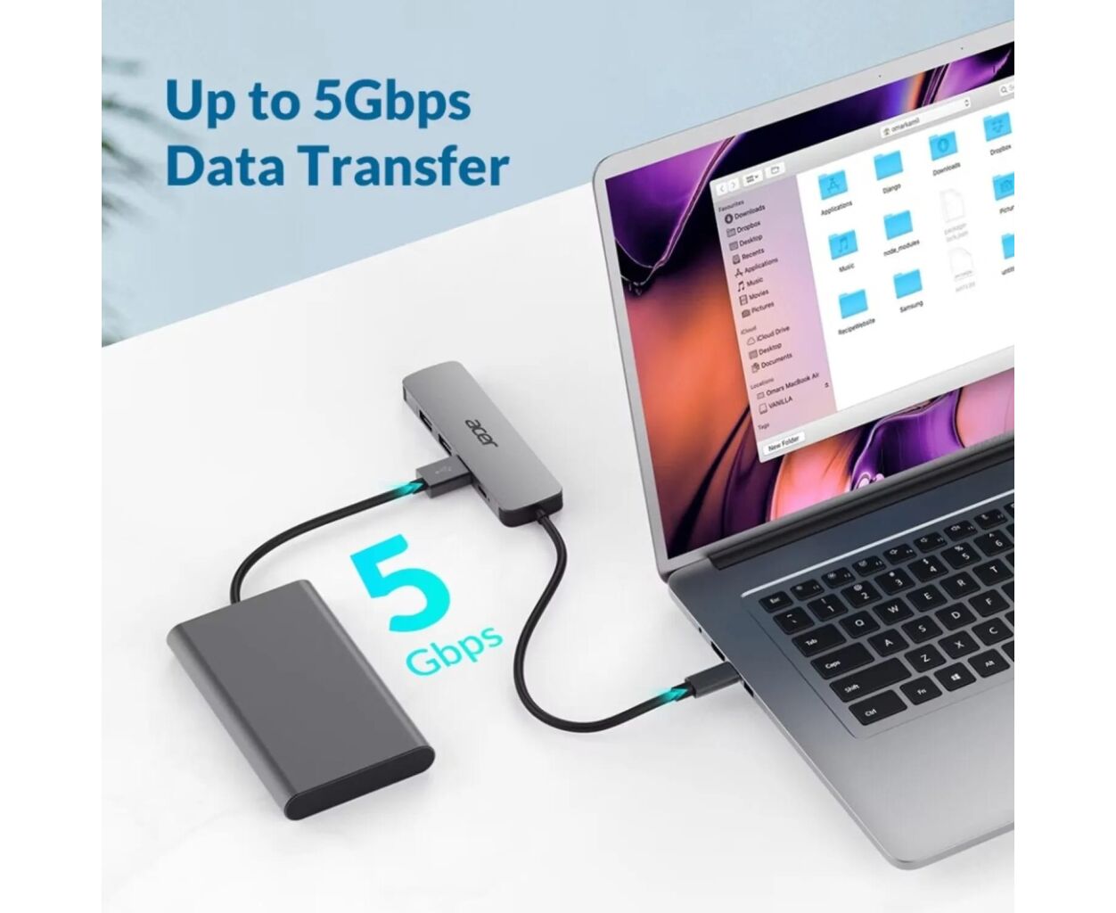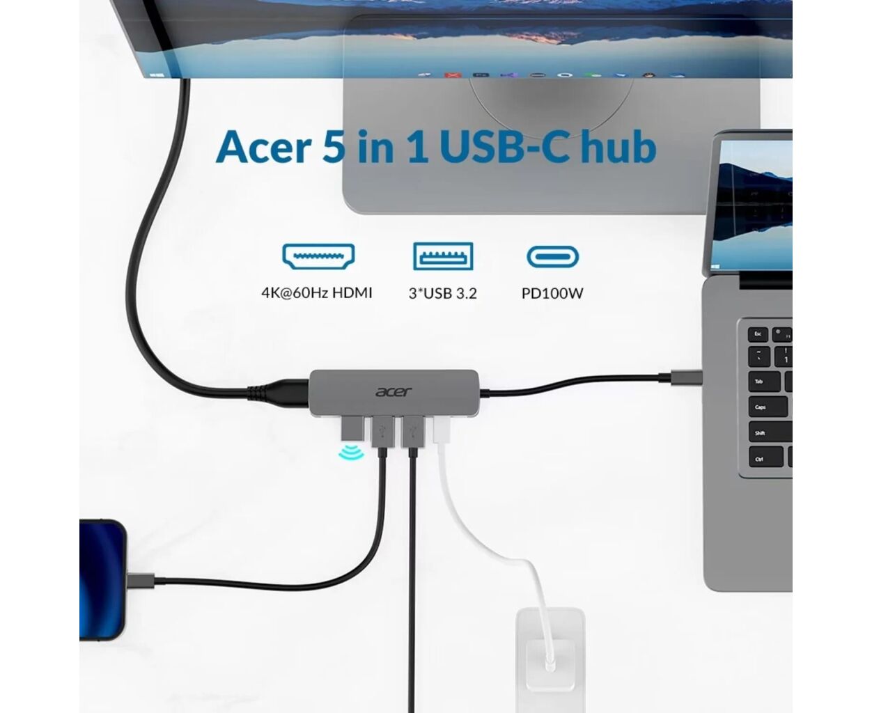 Описание Концентратор Acer USB-C 5-in-1 3xUSB 3.0 + HDMI + USB-C gray (HP.DSCAB.021)