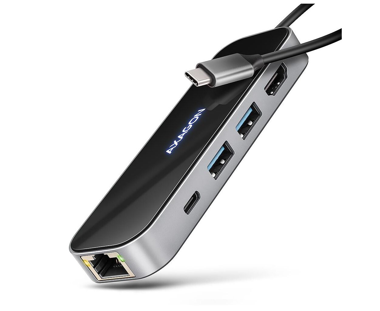 Концентратор AXAGON USB-C to 2xUSB-A + 1xUSB-C + HDMI + RJ45 + PD100W 0.2m grey (HMC-6GLN)