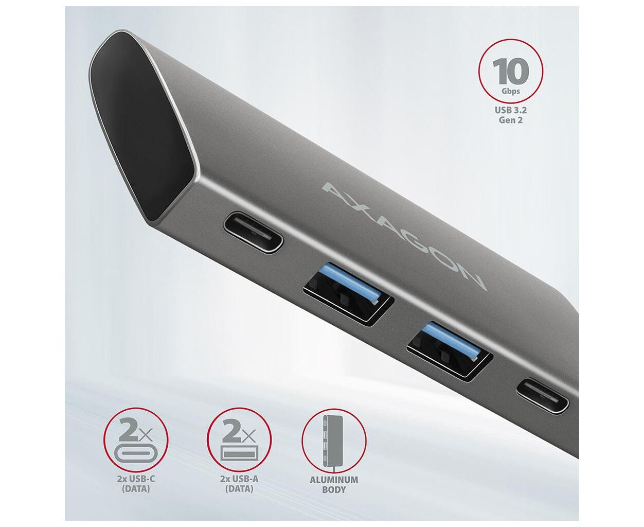 Характеристики Концентратор AXAGON USB-C to 2xUSB-A + 2xUSB-C 10Gbps 0.13m gray (HMC-4G2)