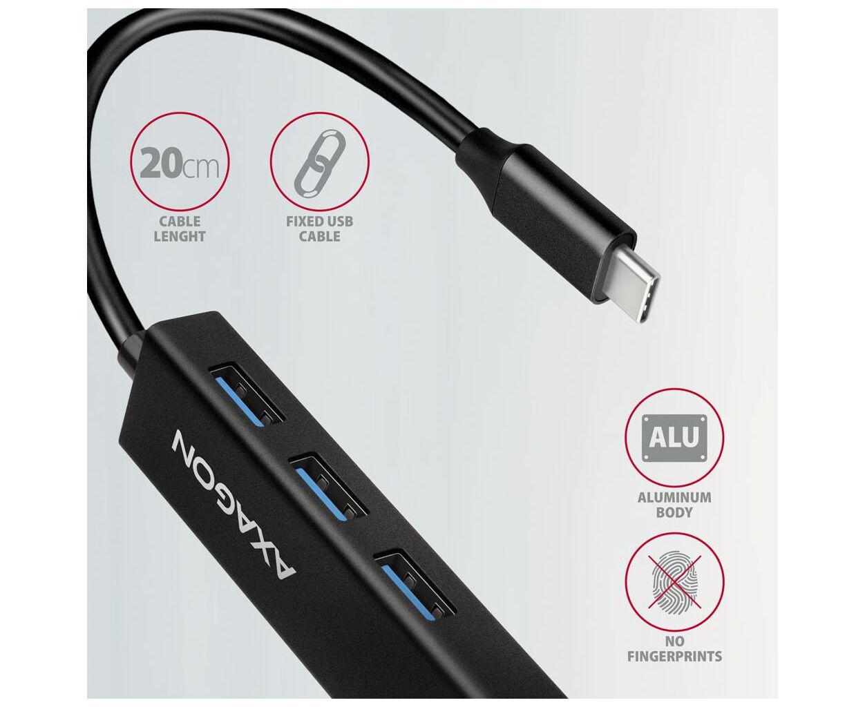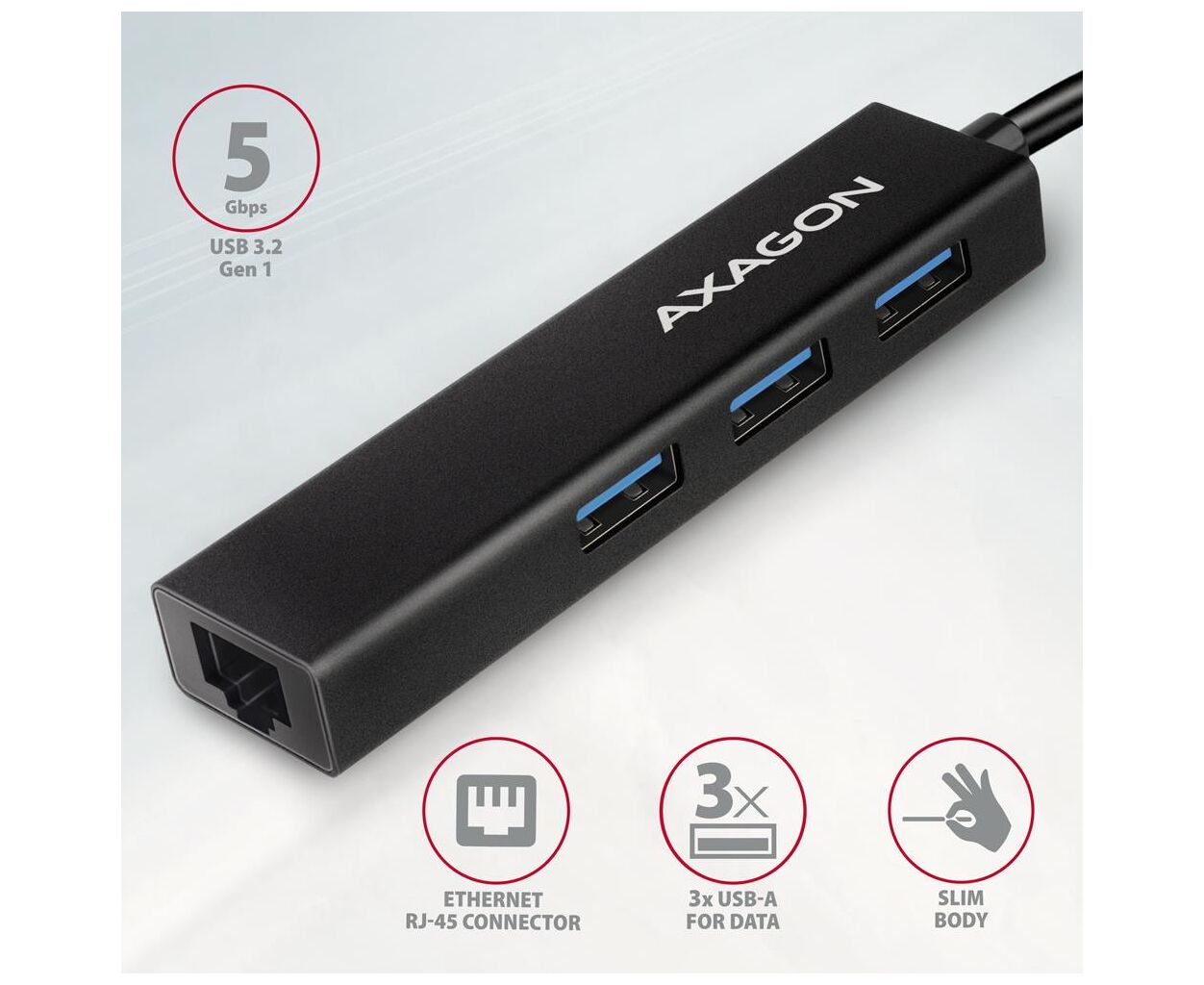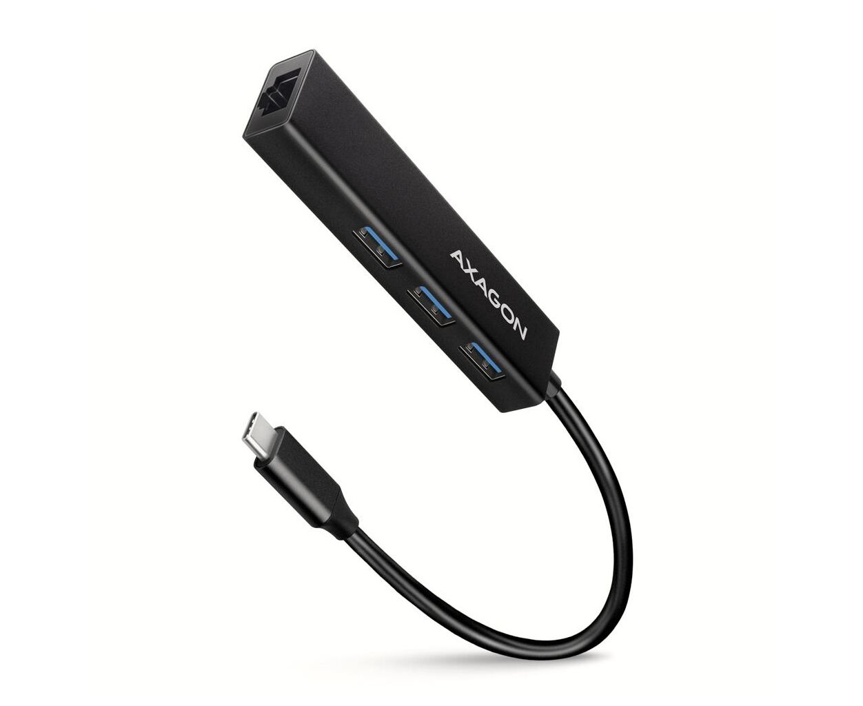 Концентратор AXAGON USB-C to 3xUSB-A + RJ45 0.2m metal black (HMC-GL3A)