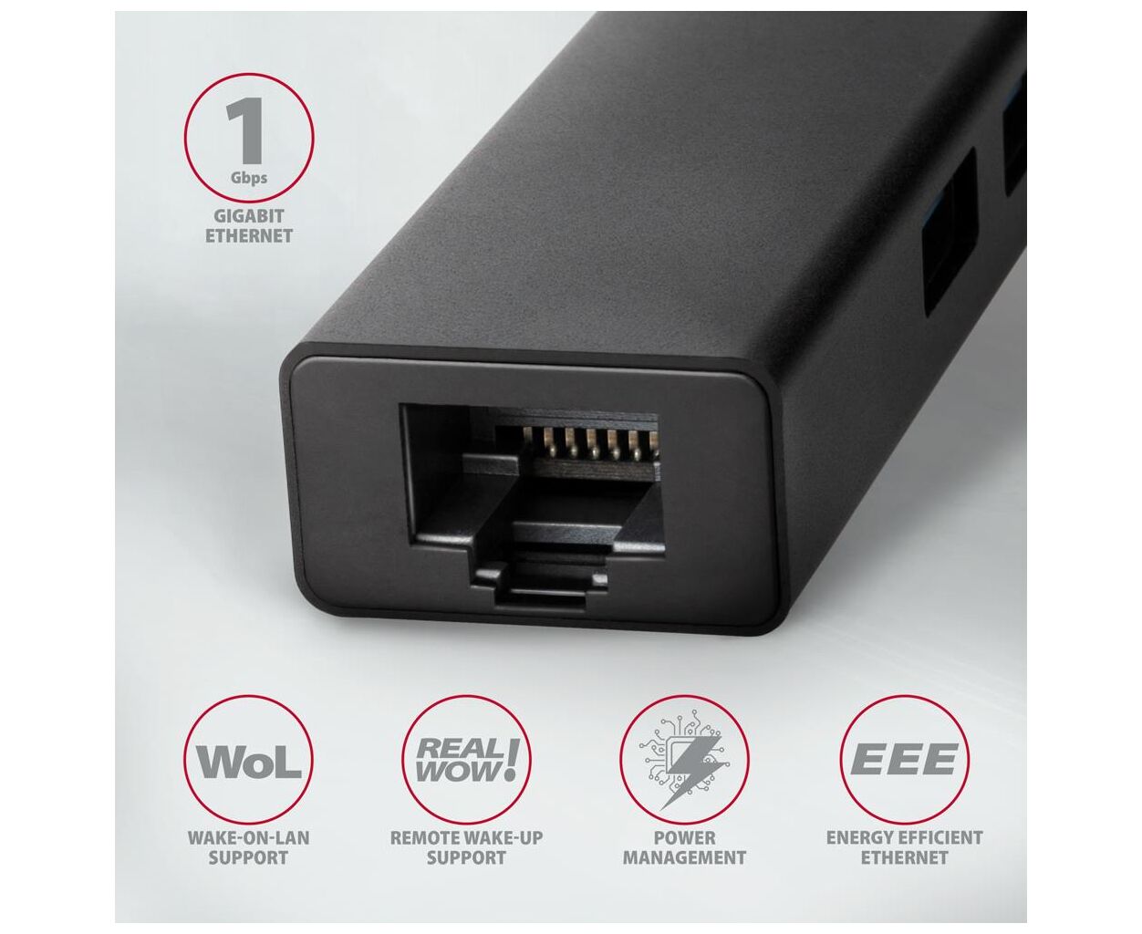 Характеристики Концентратор AXAGON USB-C to 3xUSB-A + RJ45 0.2m metal black (HMC-GL3A)