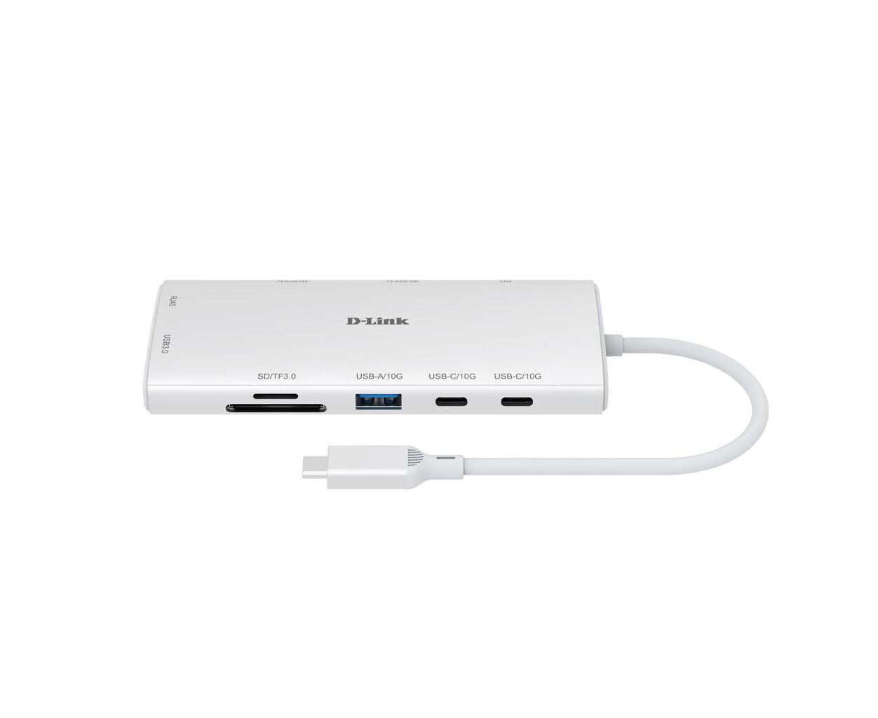 Описание Концентратор D-Link USB-C 10-in-1 2xHDMI + 1xRJ45 1000Mbps + 2xUSB-C + USB 3.1 + USB 3.0 + SD + TF silver (DUP-A01)