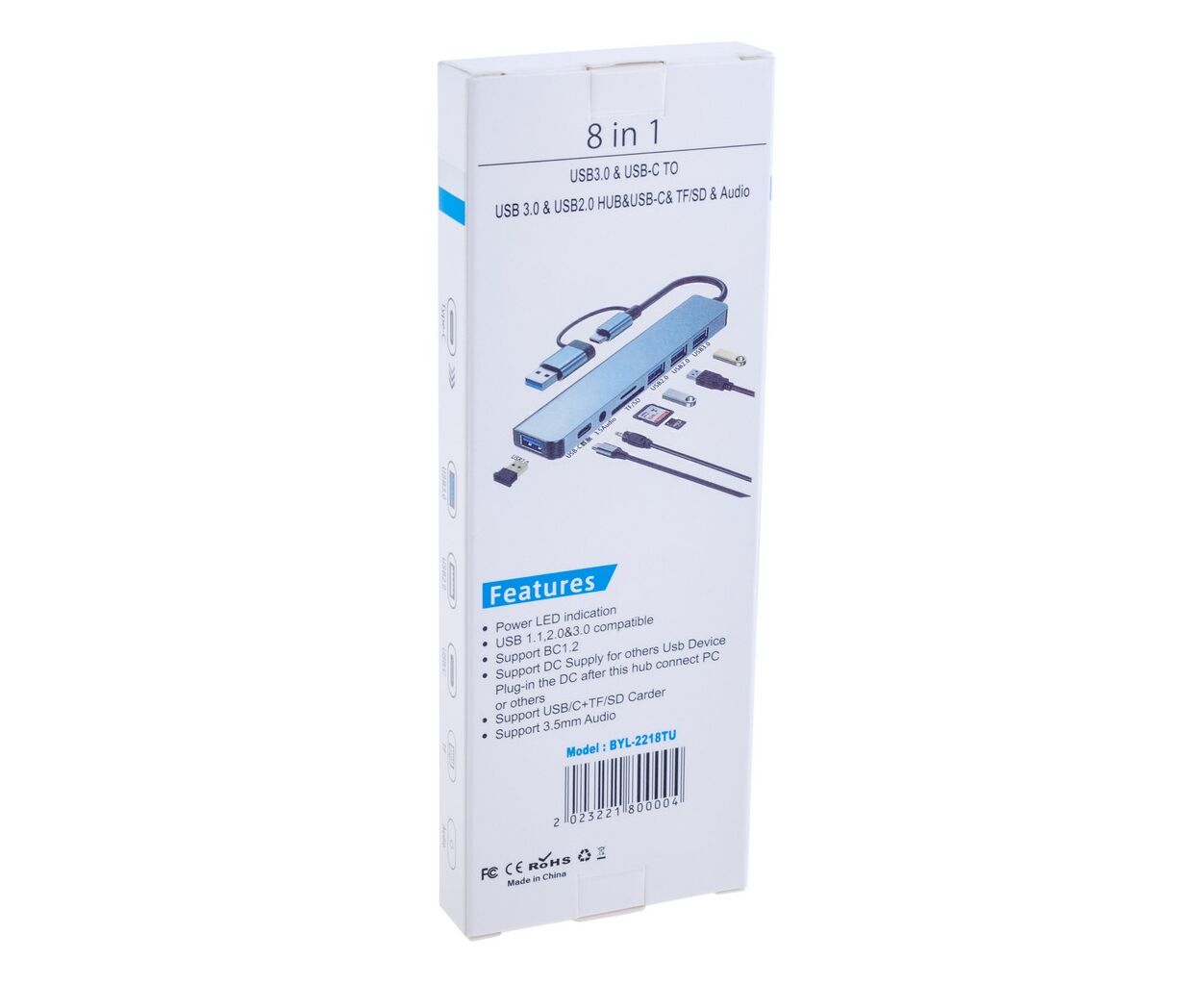 USB-хаб Dynamode BYL-2218TU является мультипортовым адаптером 8-в-1, имеет "на борту" порты 1xAUX 3.5mm + 4xUSB Type-A + 1xUSB Type-C + SD/MicroSD и позволяет расширить интегрированные порты в современных ультратонких ноутбуках, смартфонах и планшетах. Он объединяет порты USB 3.0, USB 2.0, кардридер для SD и MicroSD/TF-карт, аудиовыход 3.5 мм и USB-C порт, что обеспечивает комфортное подключение любой периферии.