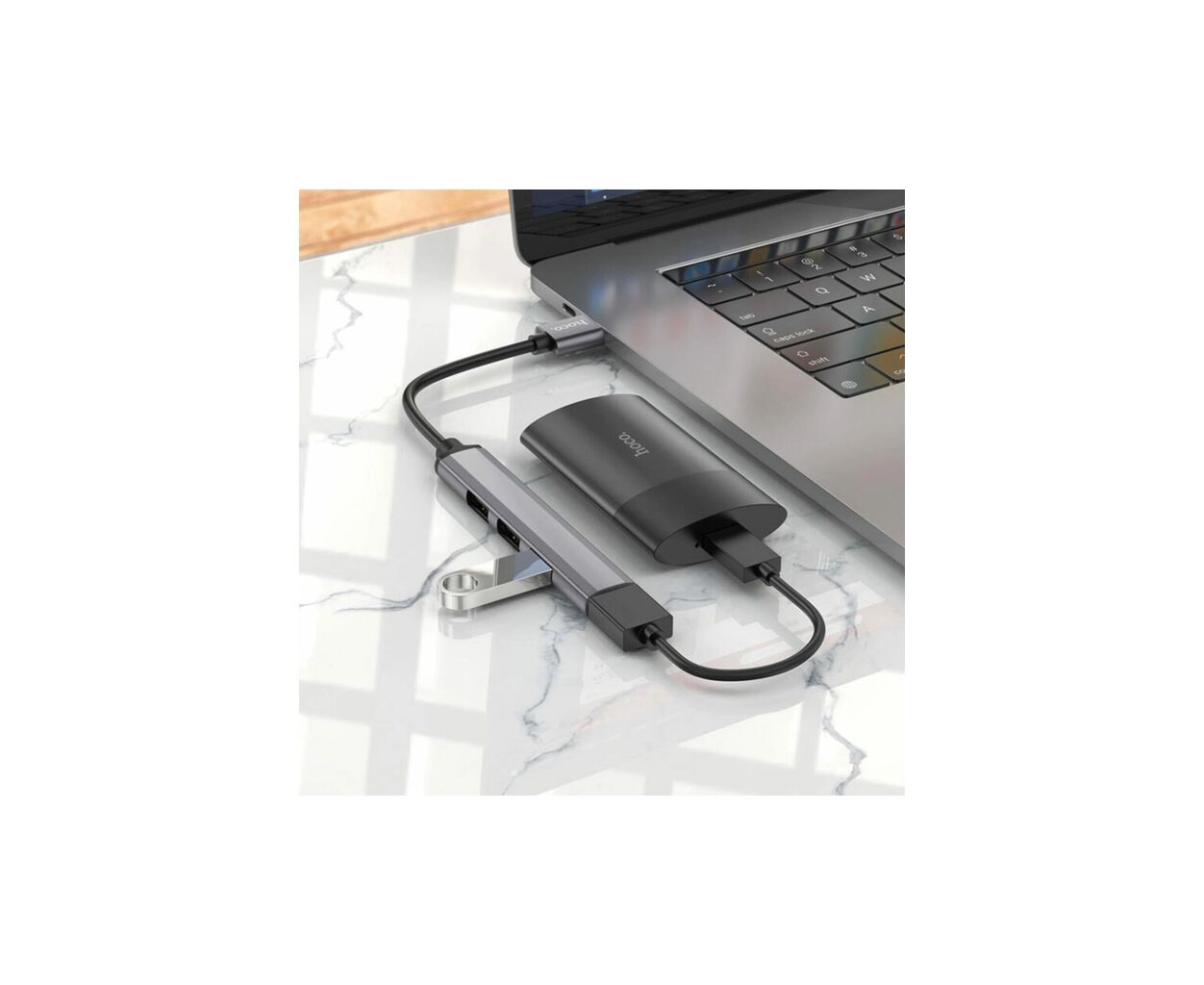 HOCO HB26 4 in 1 adapter(USB to USB3.0+USB2.0*3) Metal Gray ─ это адаптер-переходник для подключения между собой устройства с целью подзарядки или передачи данных.